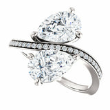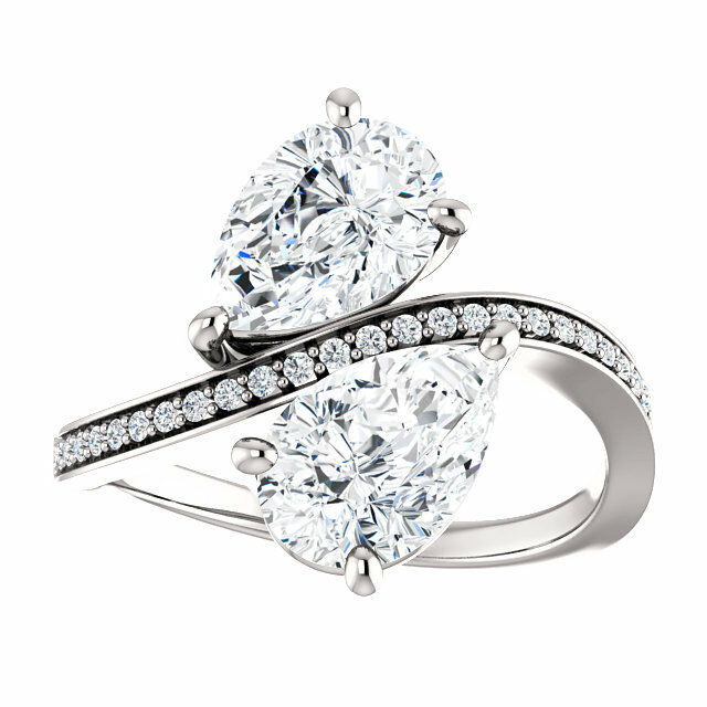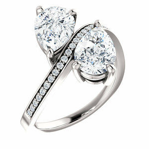 2ct Pear Cut Diamond 2 Stone Solitaire Engagement Ring 14k White Gold Finish