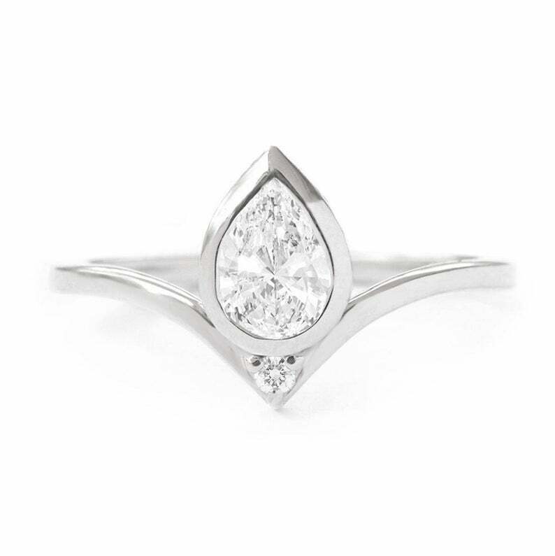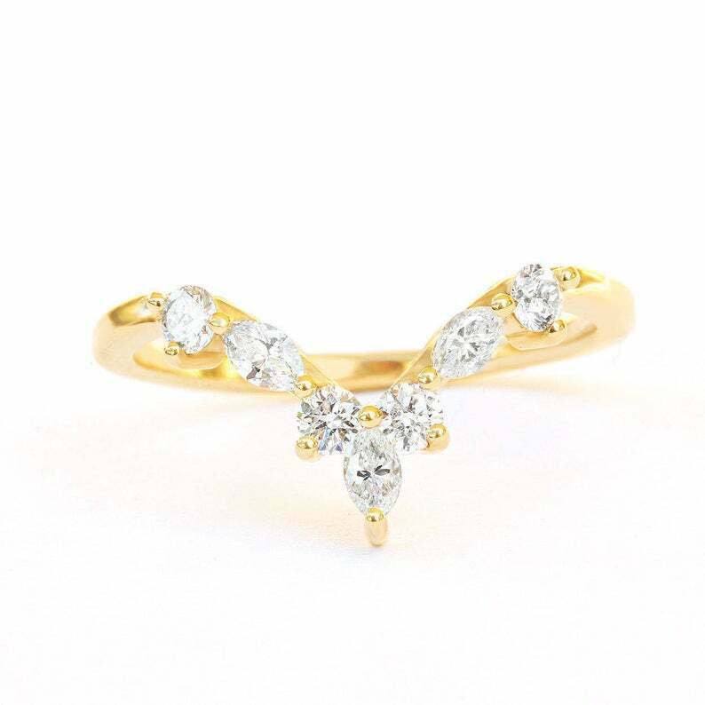 2ct Pear Cut Diamond Curved Chevron Crown Bridal Set Ring 14k Yellow Gold Finish