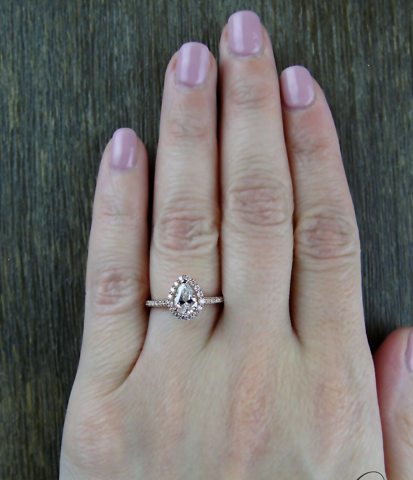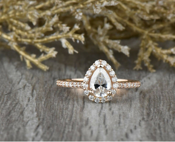 2ct Pear Cut Diamond Engagement Ring 14k RoseGold Finish Halo Solitaire Teardrop