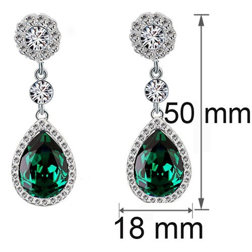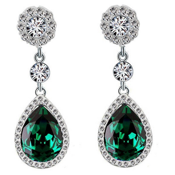 2ct Pear Cut Green Emerald Diamond Halo Tear Drop Earrings 14k White Gold Finish
