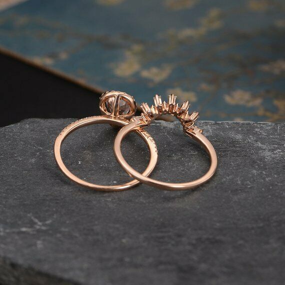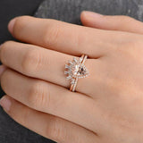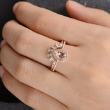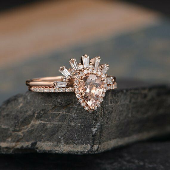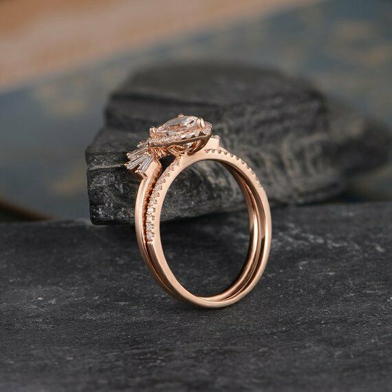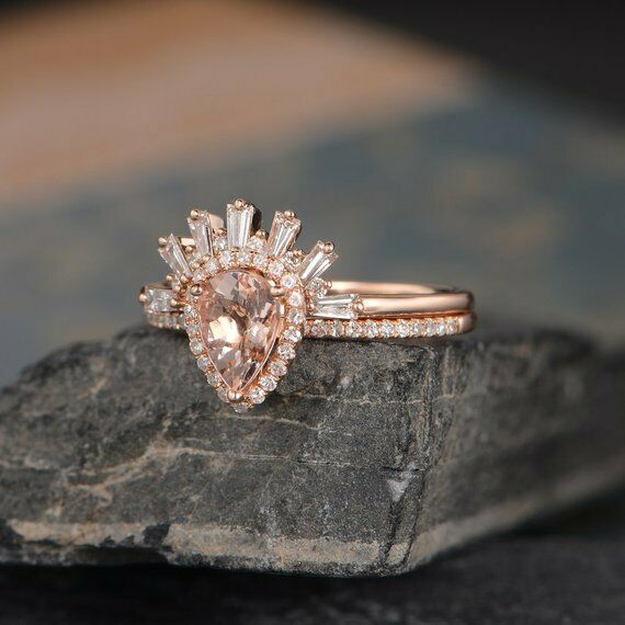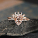 2ct Pear Cut Peach Morganite Engagement Ring 14k RoseGold Finish Halo Bridal Set