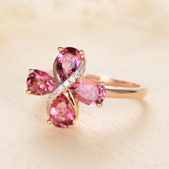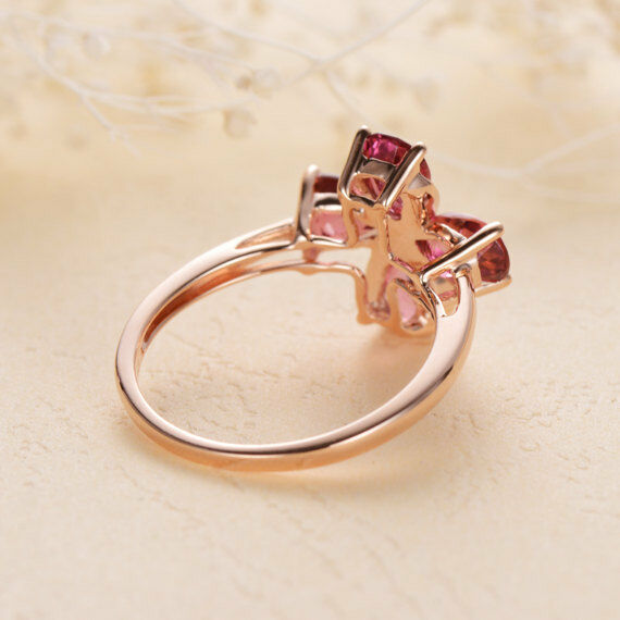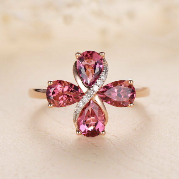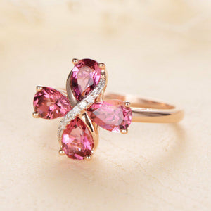2ct Pear Cut Pink Sapphire Infinity Floral Engagement Ring 14k Rose Gold Finish