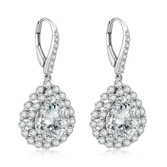 2ct Pear Cut VVS1D Diamond Double Halo Drop Earrings 14k White Gold Finish