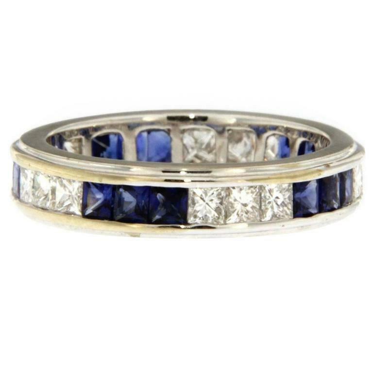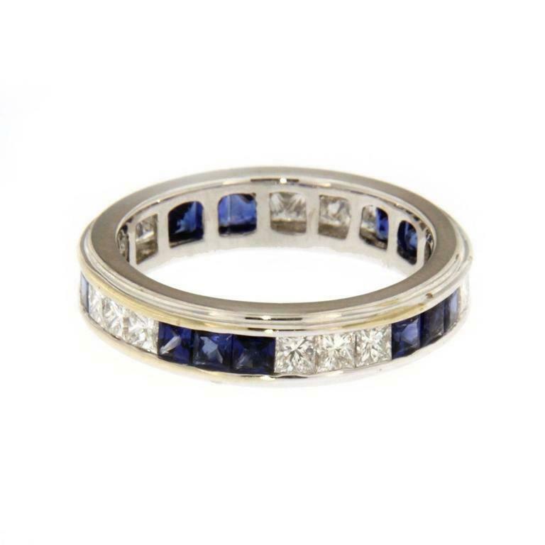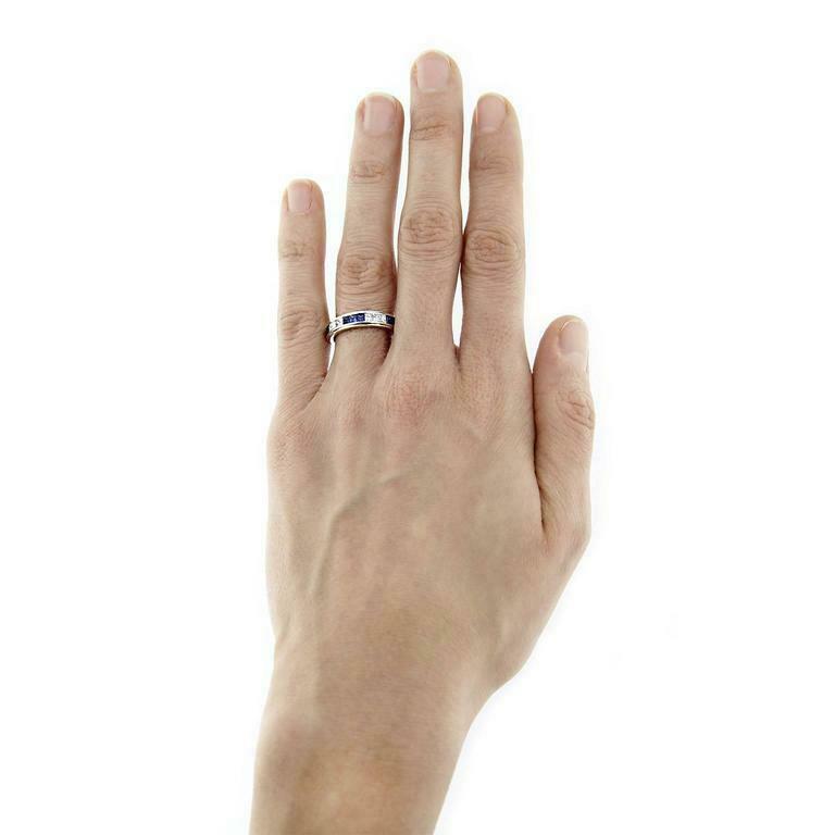 2ct Princess Cut Blue Sapphire Channel Set Eternity Band 14k White Gold Finish