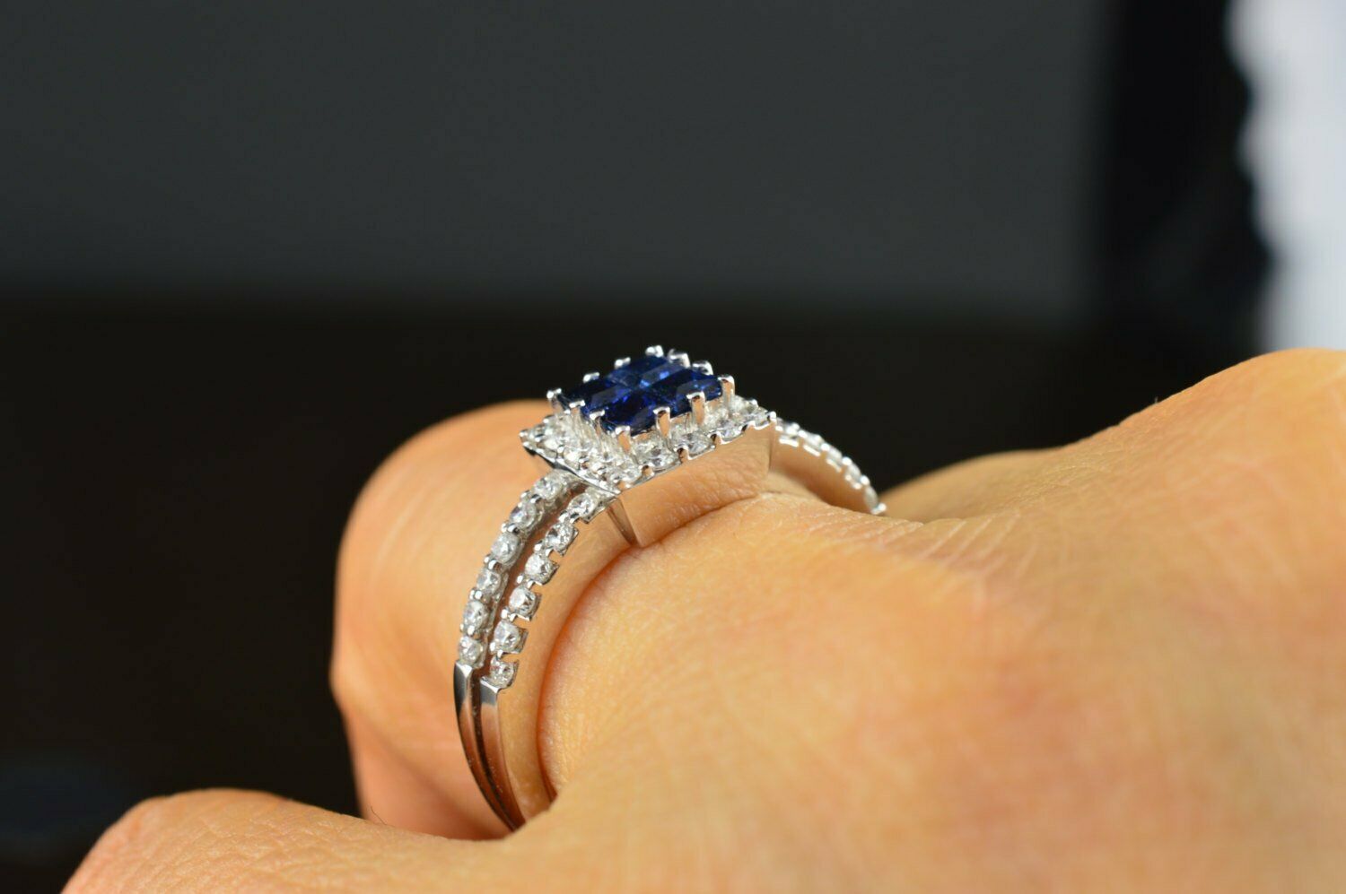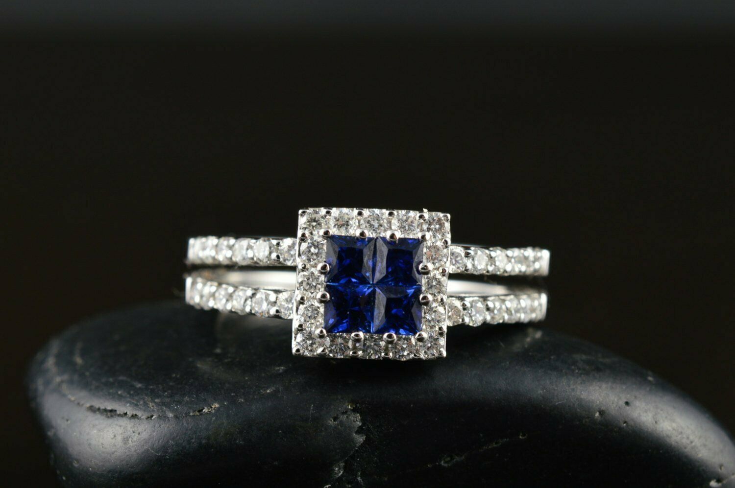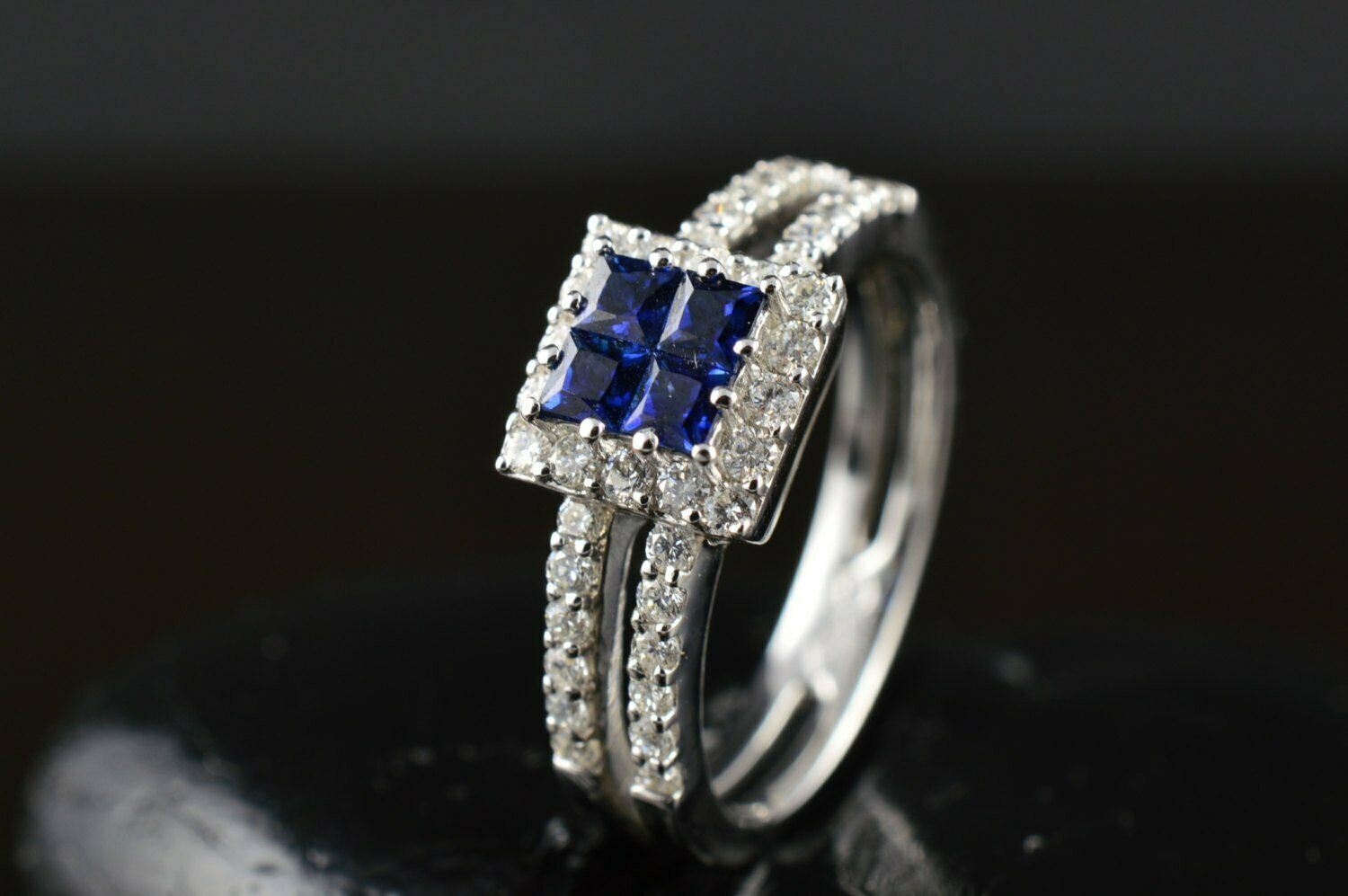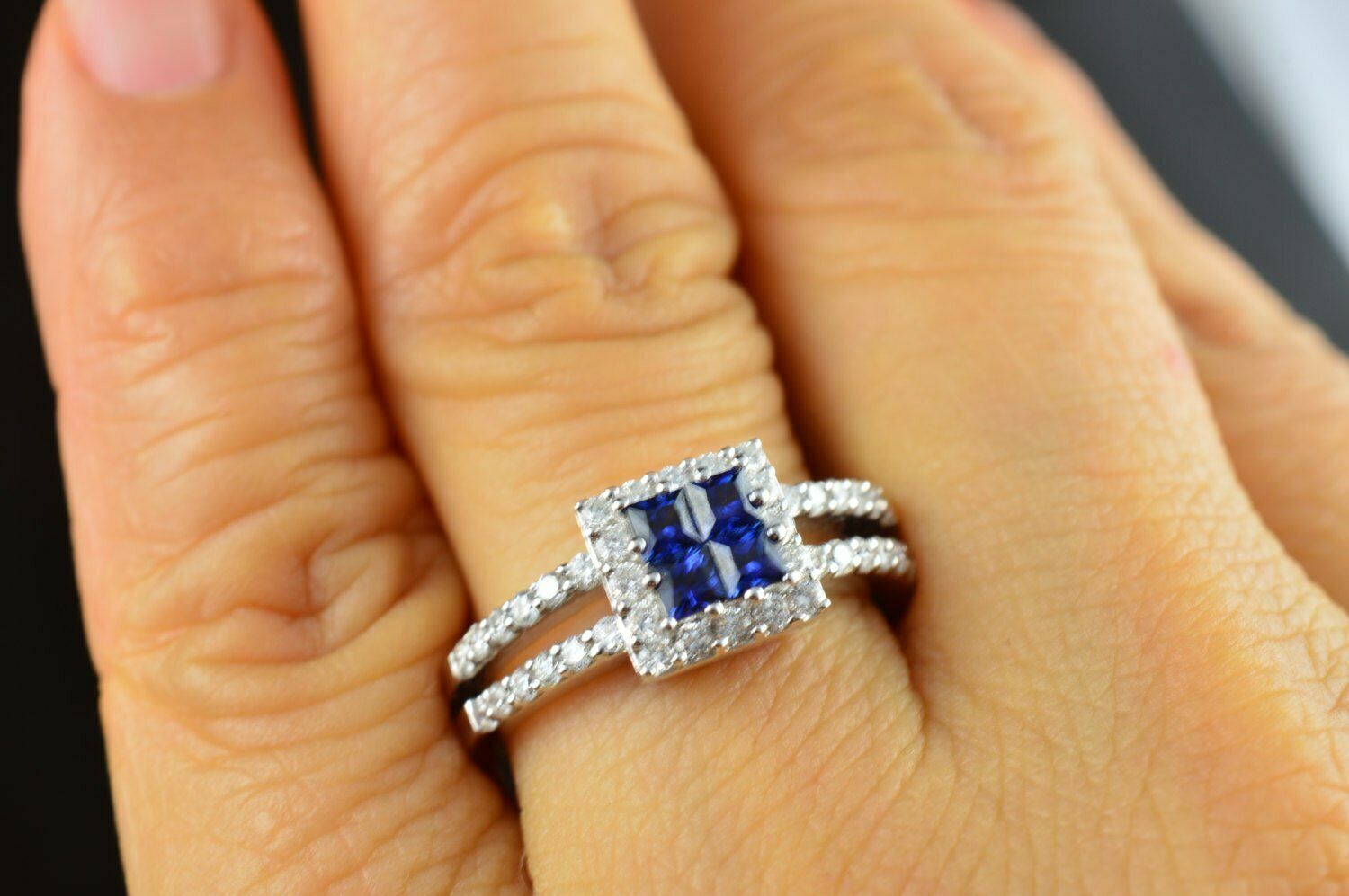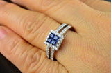 2ct Princess Cut Blue Sapphire Engagement Ring 14k White Gold Finish Split Band