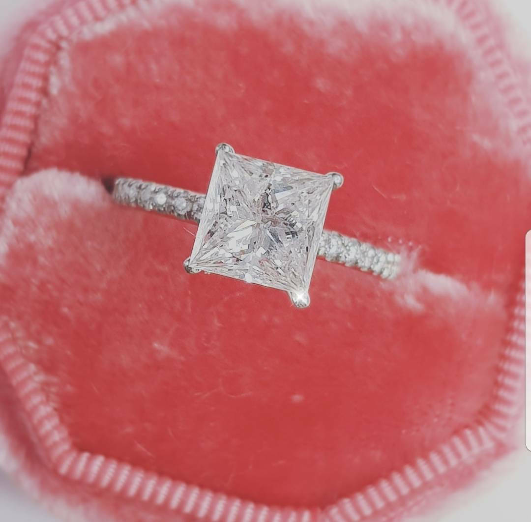 2ct Princess Cut Diamond Accent Solitaire Engagement Ring 14k White Gold Finish