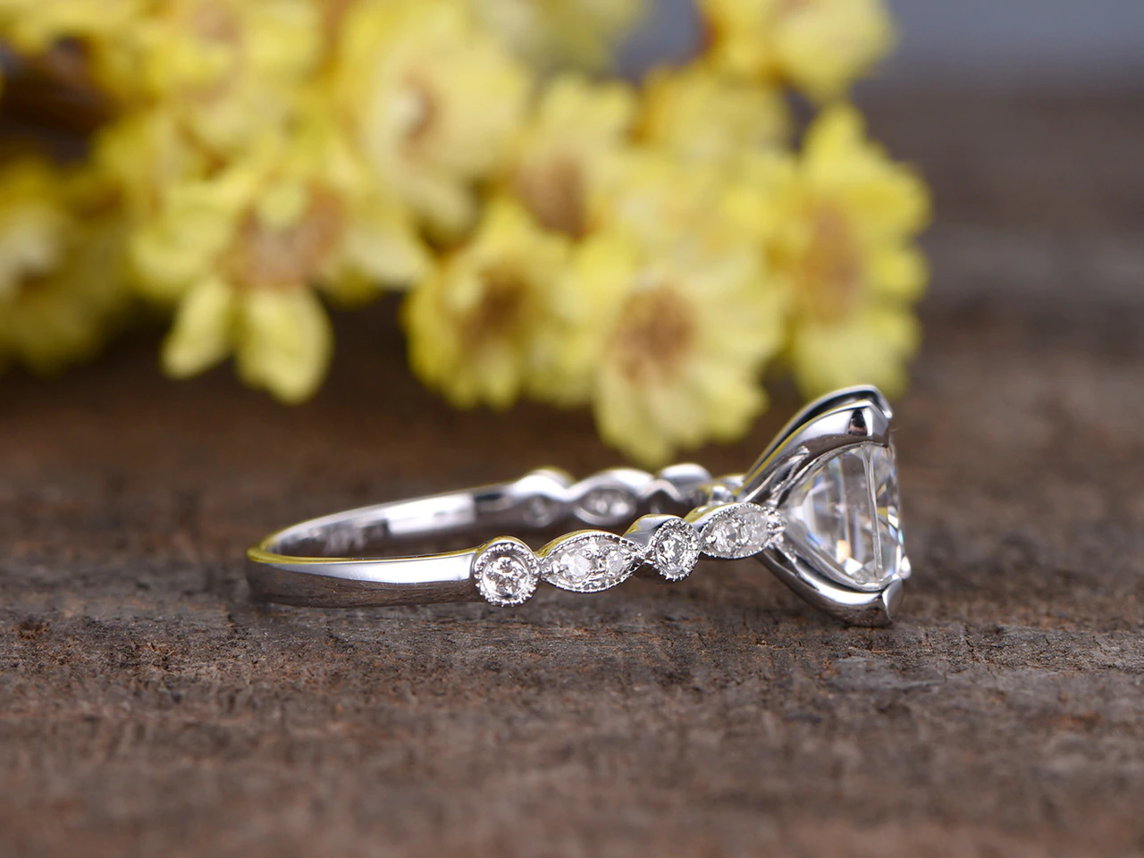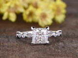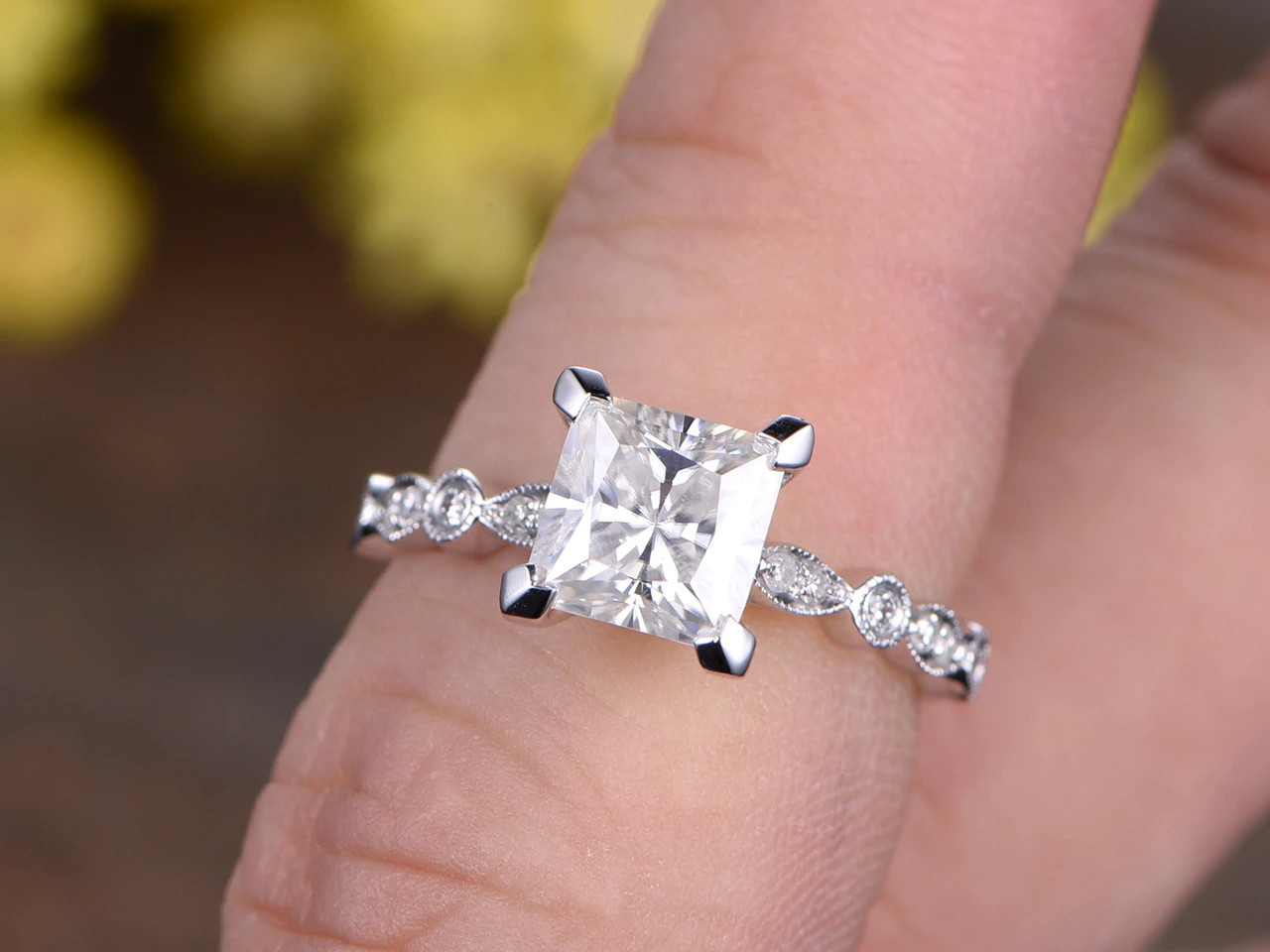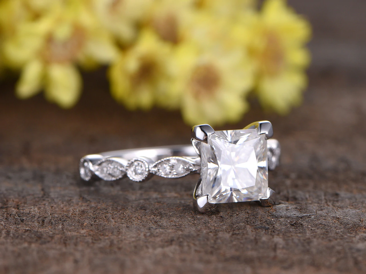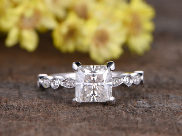 2ct Princess Cut Diamond Engagement Ring 14k White Gold Finish Antique Milgrain