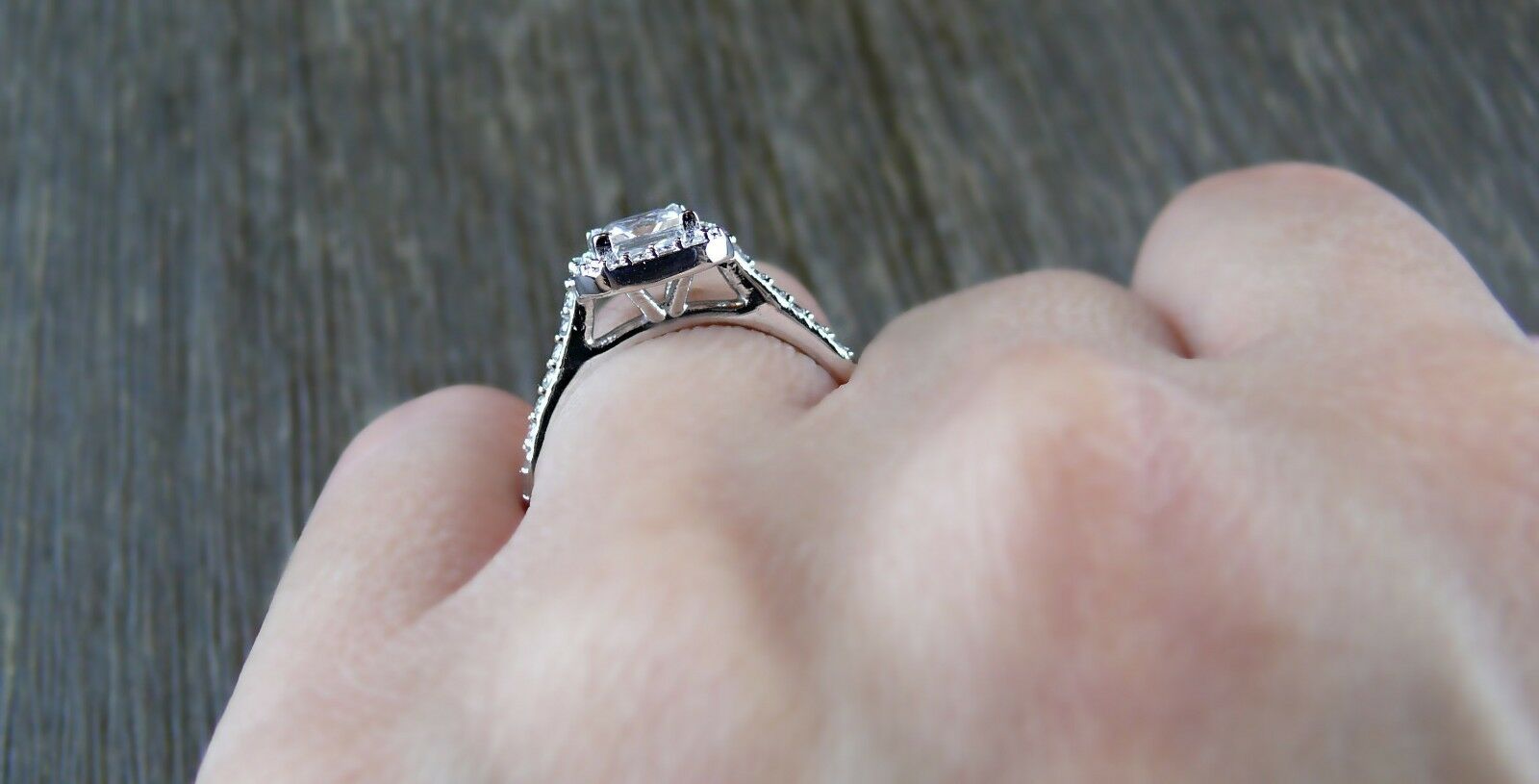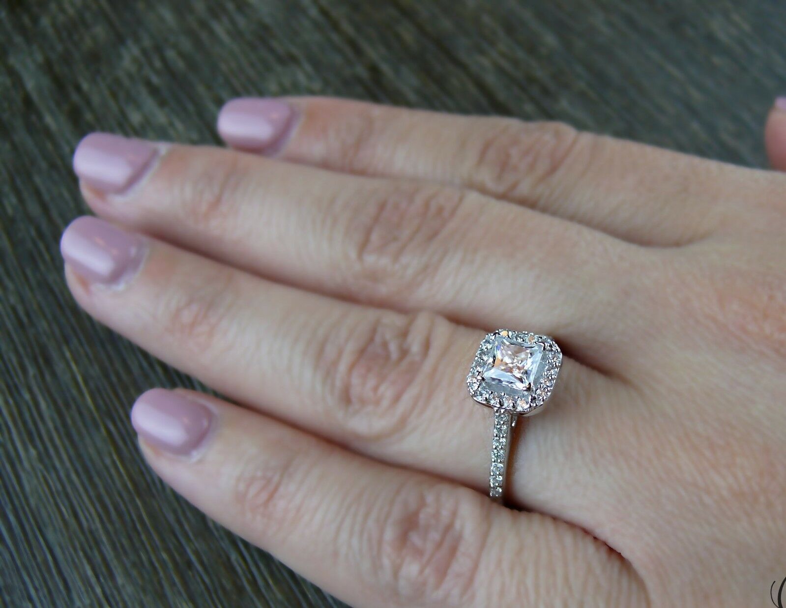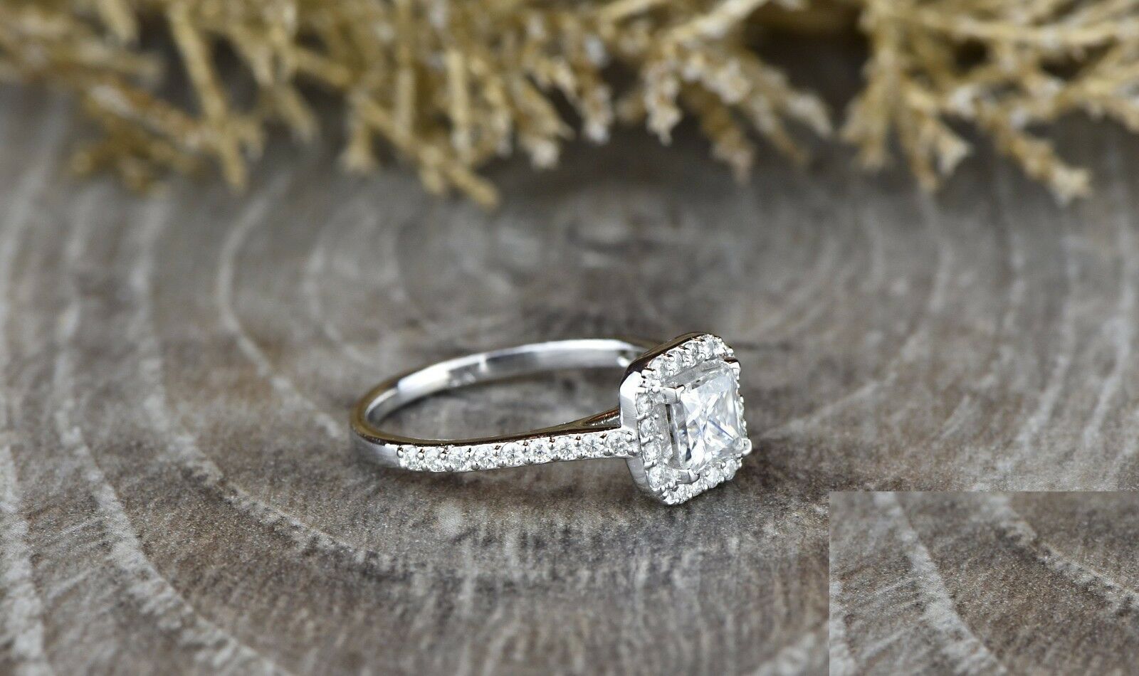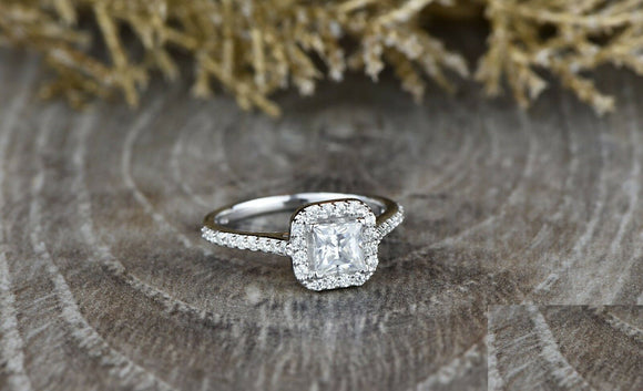 2ct Princess Cut Diamond Engagement Ring 14k White Gold Over Halo Bridal Promise