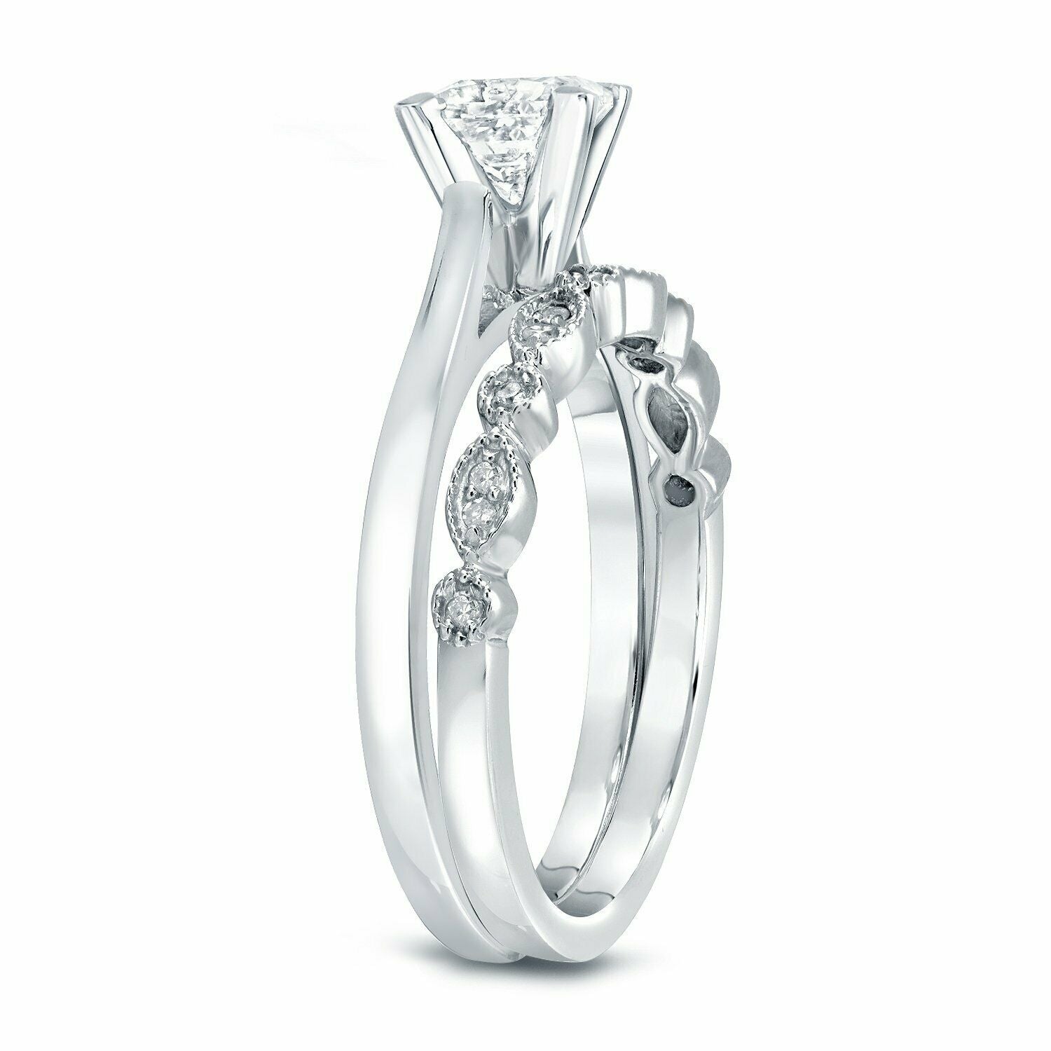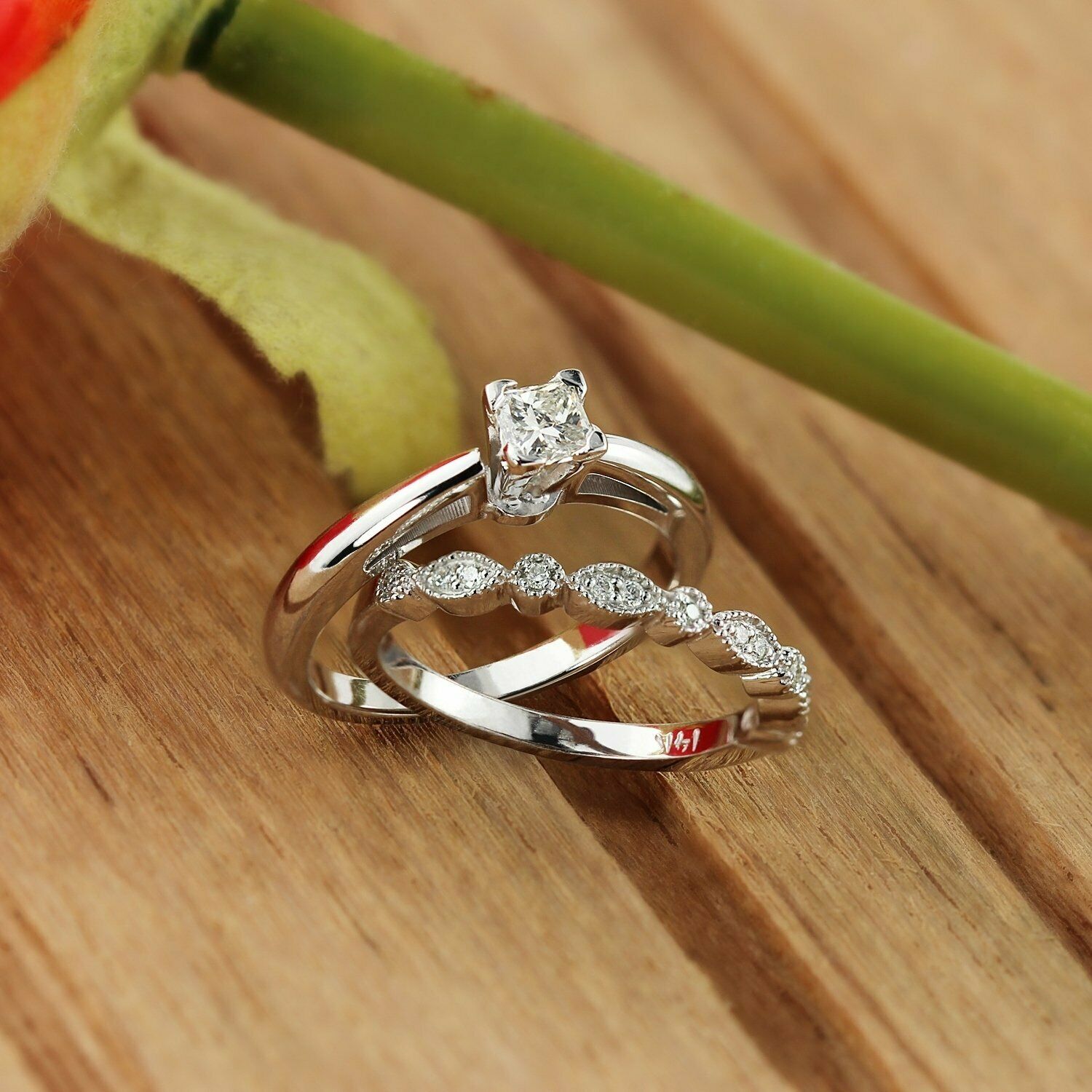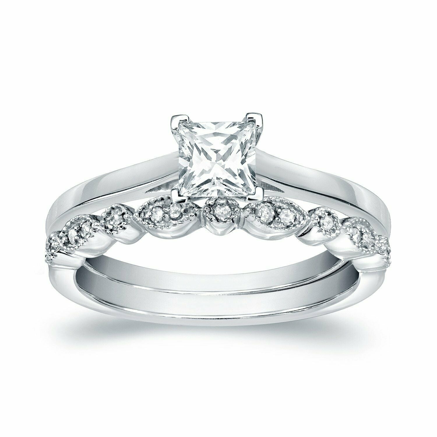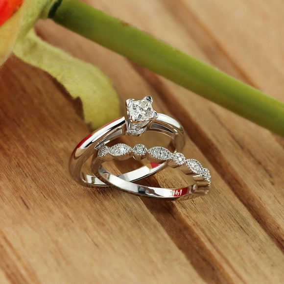 2Ct Princess Cut Diamond Engagement Wedding Bridal Set Ring 14K White Gold Over