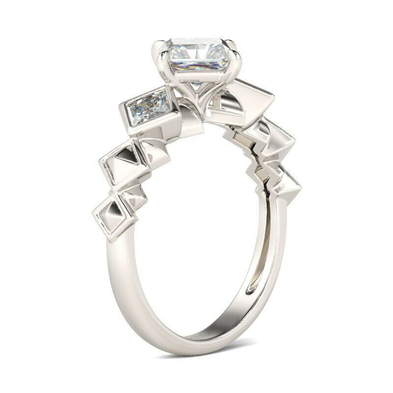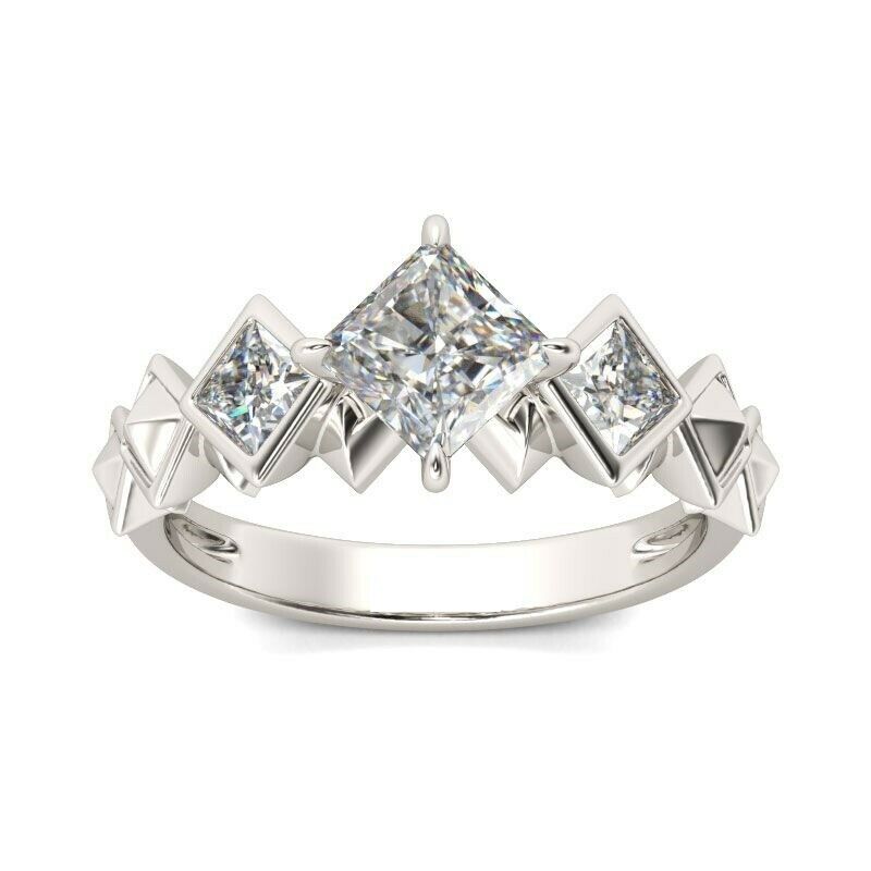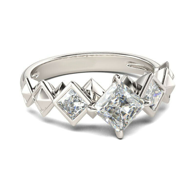 2Ct Princess Cut Diamond Pyramid Inspired Engagement Ring 14K White Gold Finish