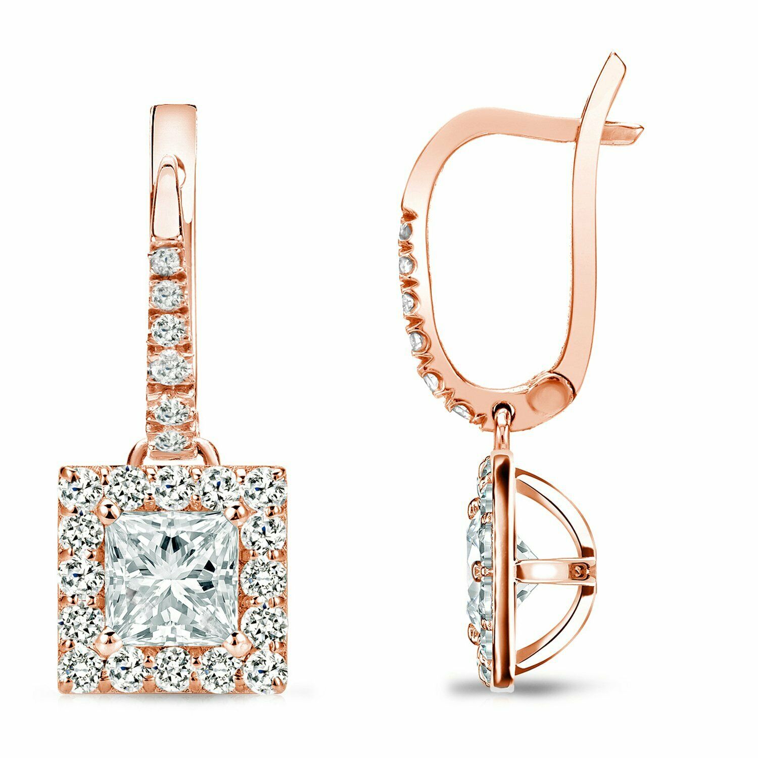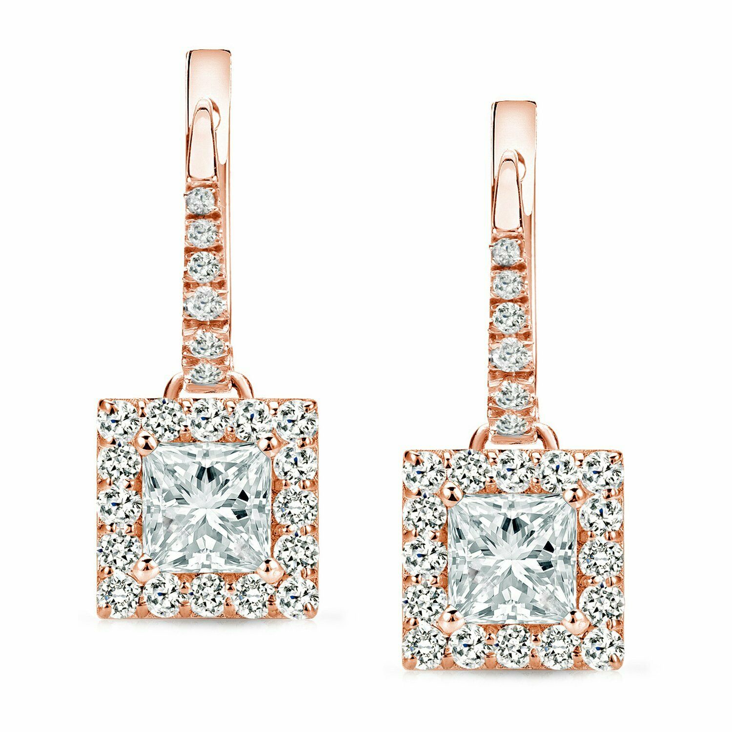 2Ct Princess Cut Diamond Stylish Dangle Drop Earrings Women 14K Rose Gold Finish