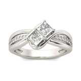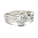 2Ct Princess Cut Diamond Swirl Round Accent Engagement Ring 14K White Gold Over