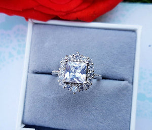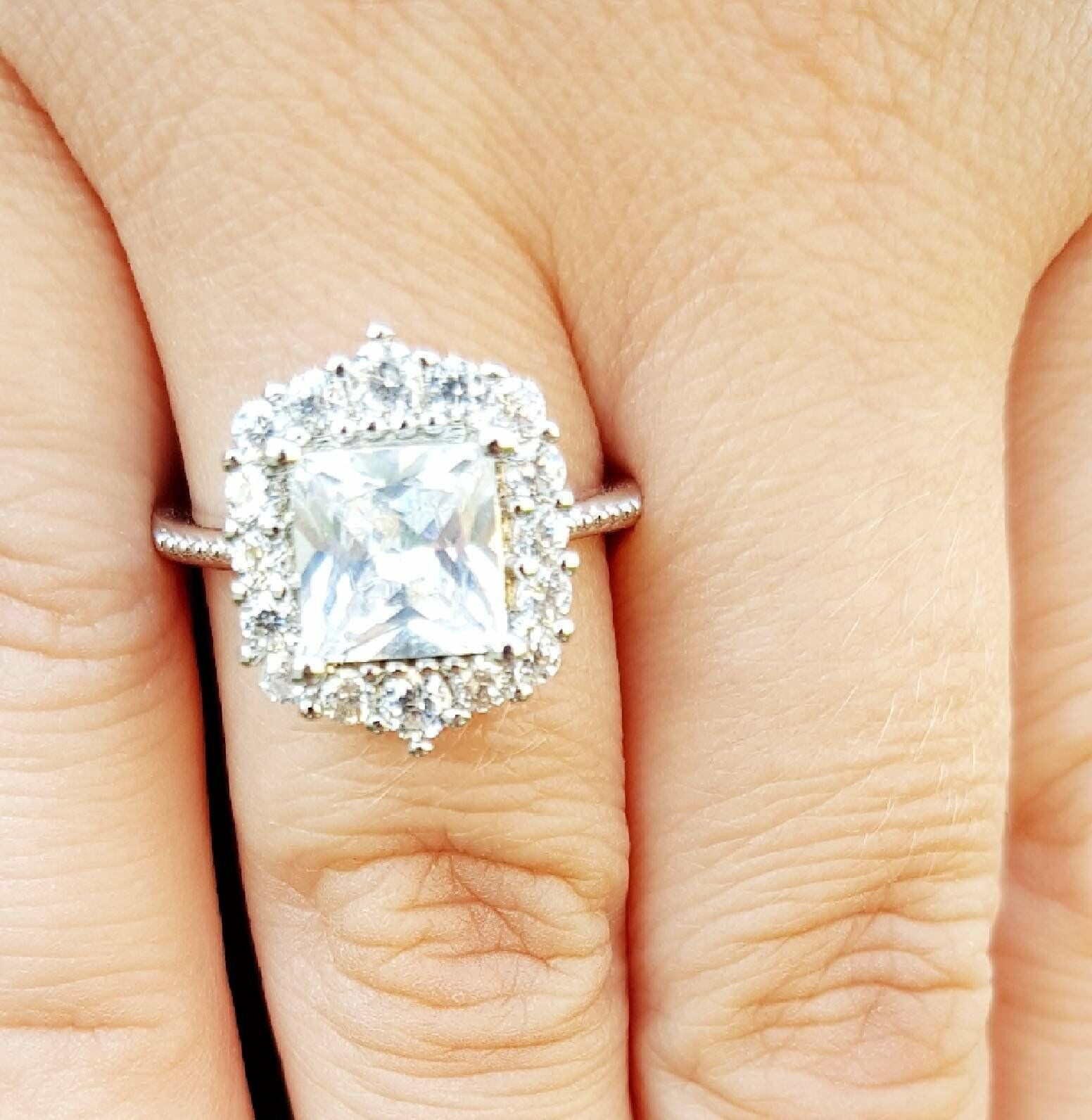 2Ct Princess Cut Diamond Vintage Art Halo Engagement Ring 14K White Gold Finish