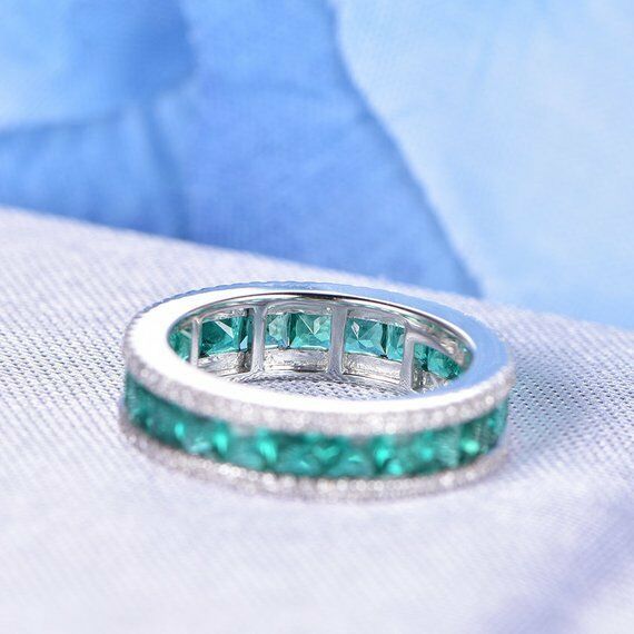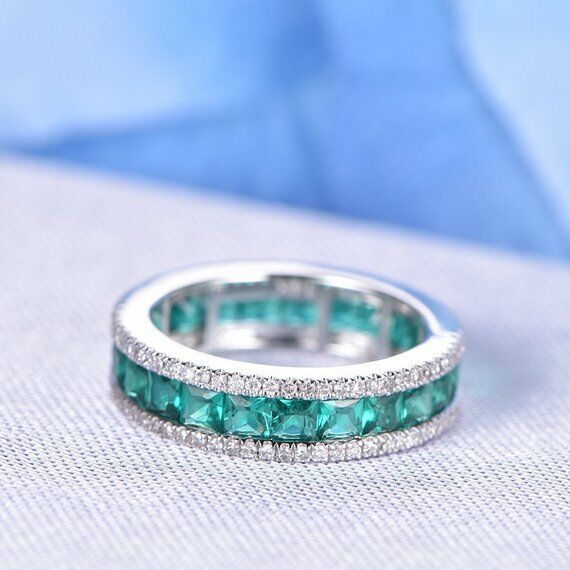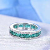 2ct Princess Cut Green Emerald Eternity Wedding Band 14k White Gold Finish