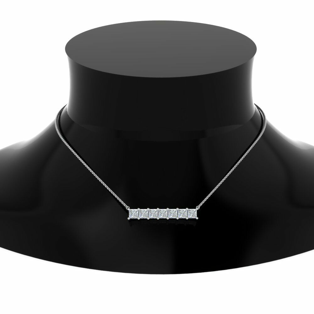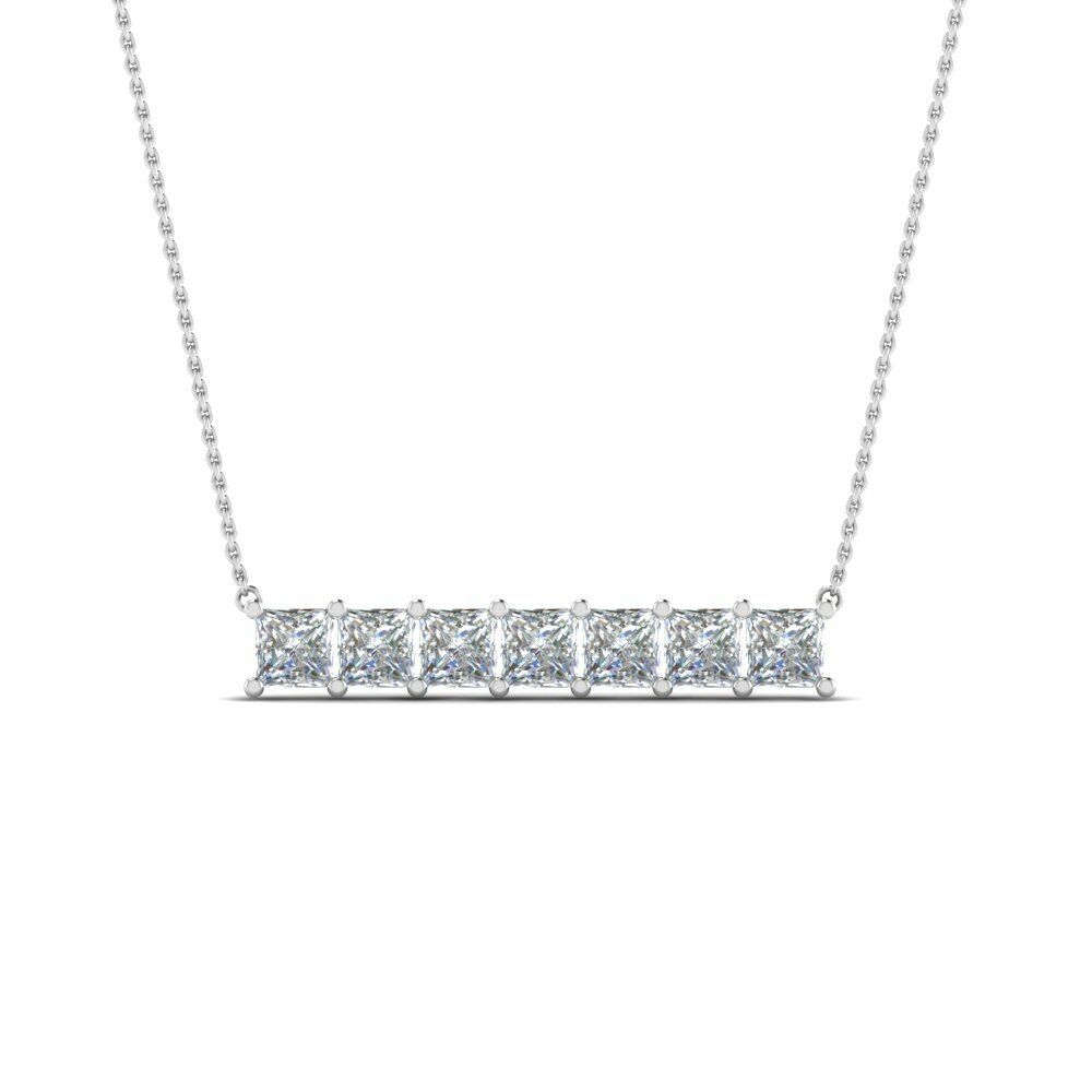 2ct Princess Diamond 7 Stone Horizontal Pendant 14k White Gold Finish NO CHAIN