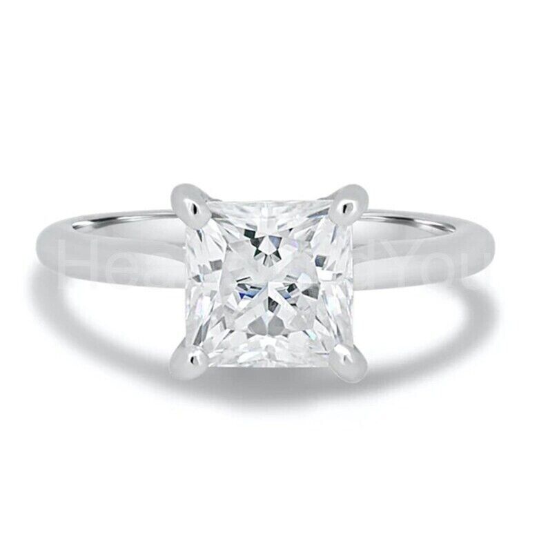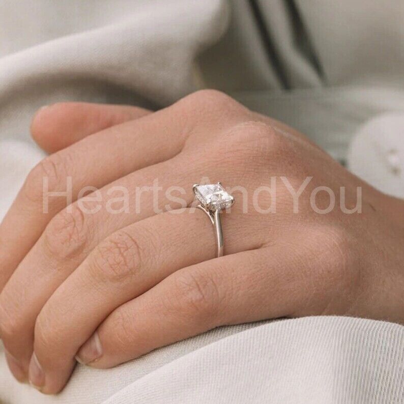 2ct Princess Cut Simulated Diamond Hidden Halo Engagement Ring 14k White Gold Plated