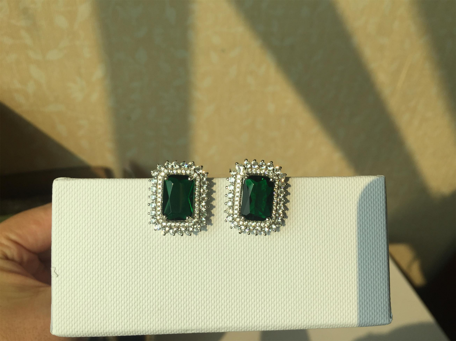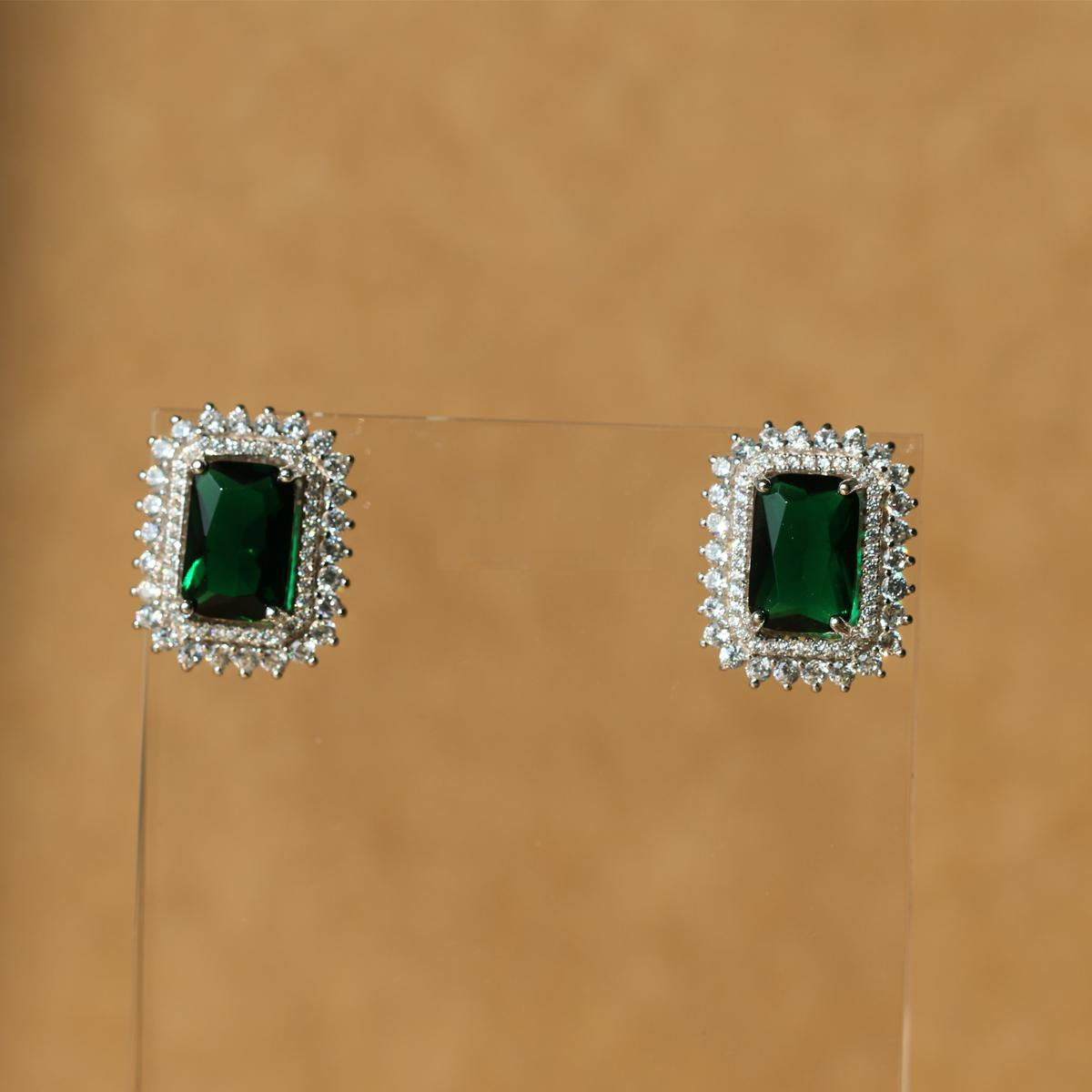 2Ct Radiant Cut Green Emerald Diamond Halo Stud Earrings 14K White Gold Finish