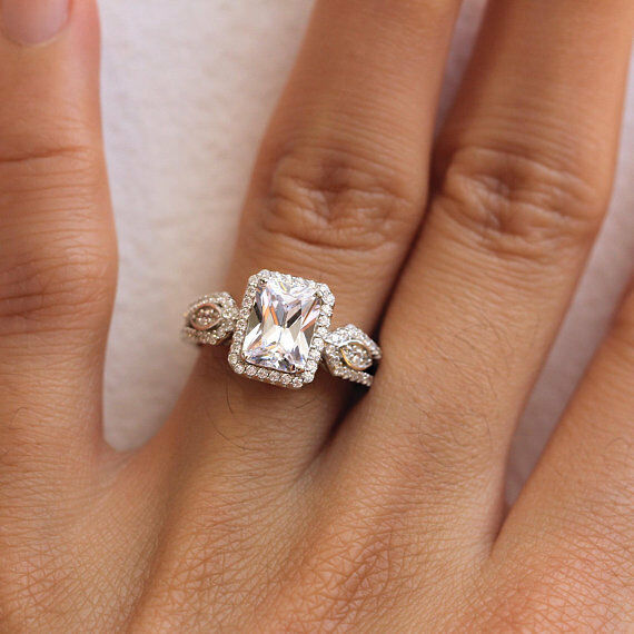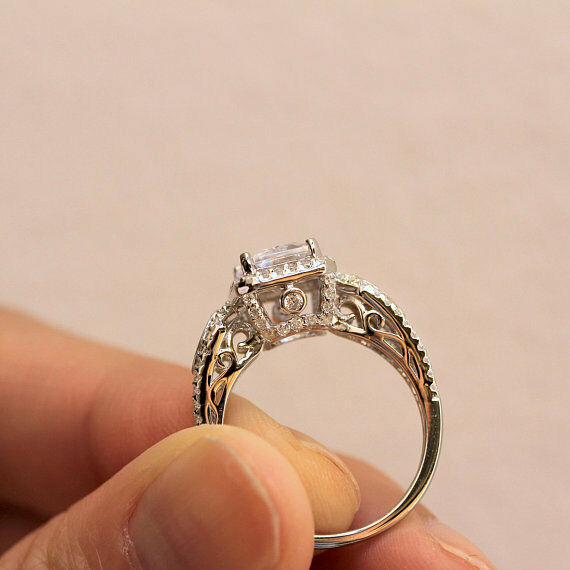 2ct Radiant Cut Vintage Gorgeous Solitaire Engagement Ring 14k White Gold Finish