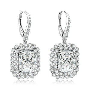 2ct Radiant Cut VVS1D Diamond Double Halo Drop Earrings 14k White Gold Finish