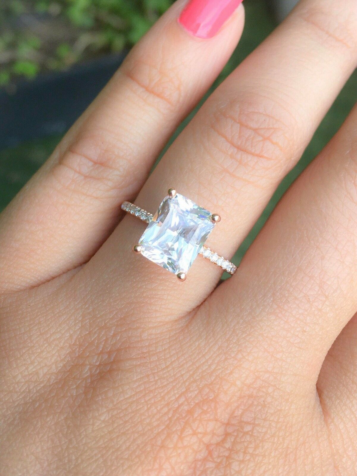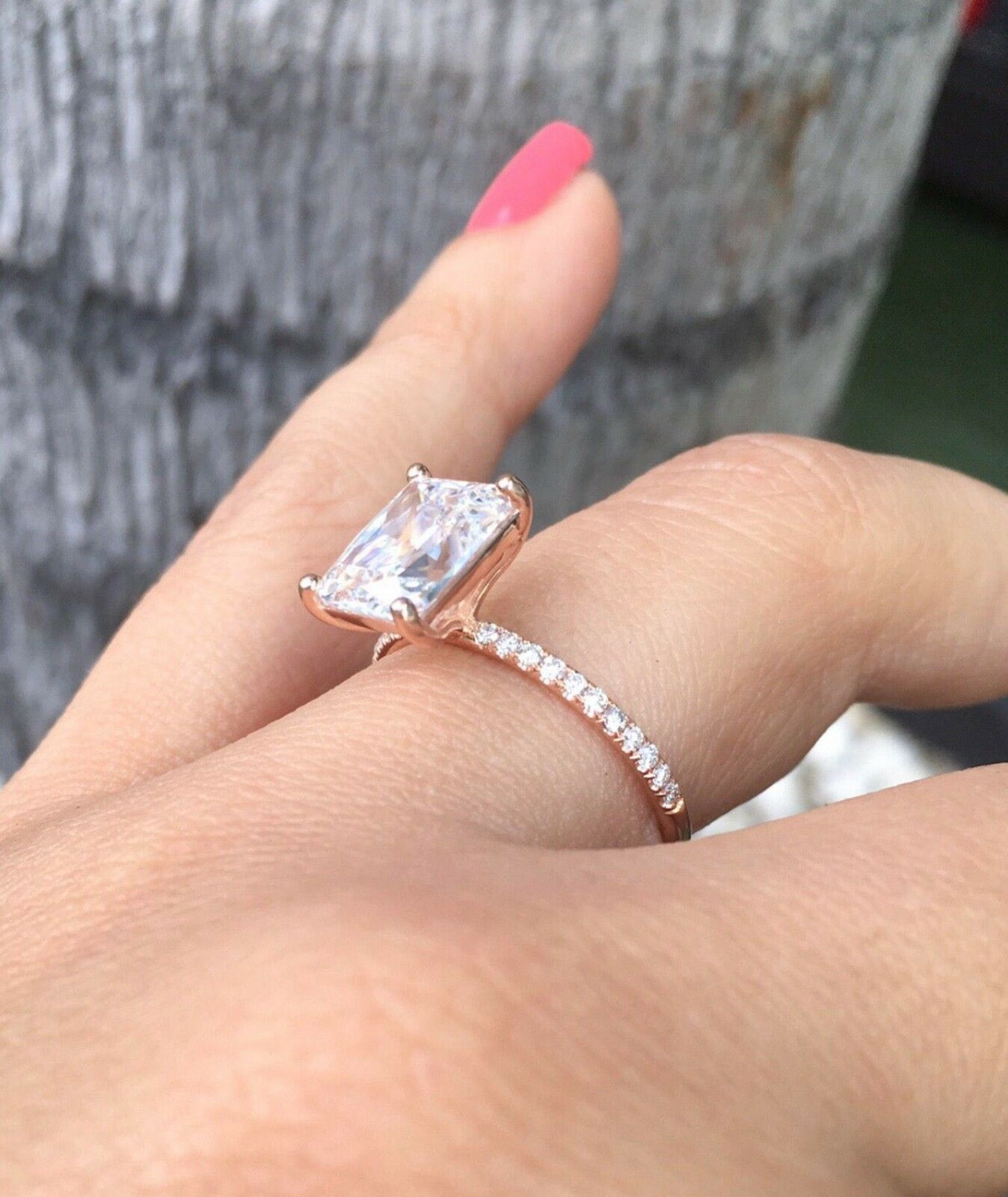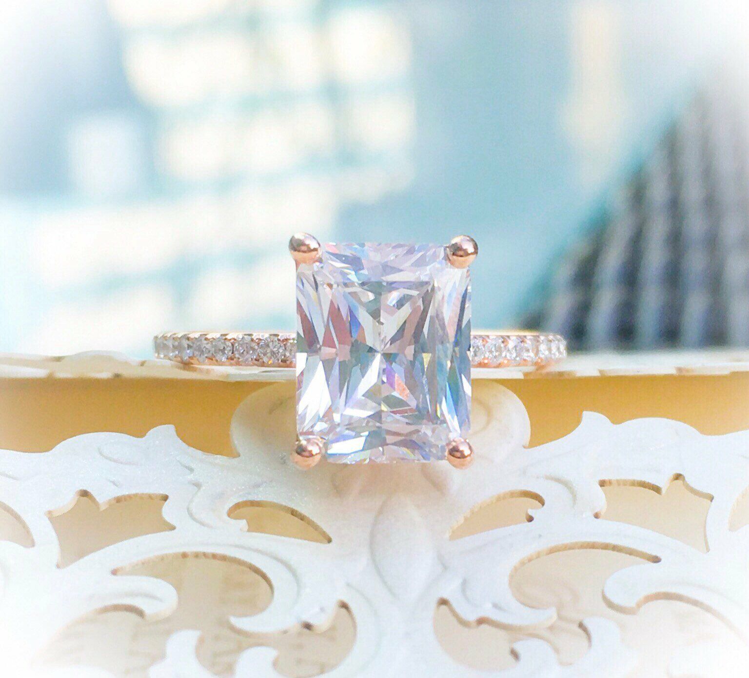 2ct Radiant Diamond Accent Solitaire Proposal Engagement Ring 14k Rose Gold Over