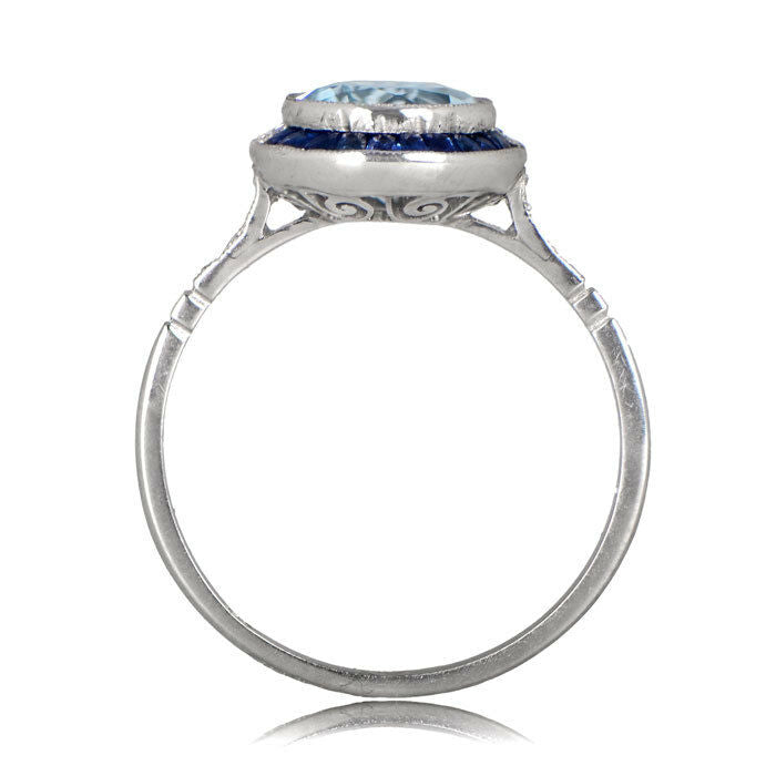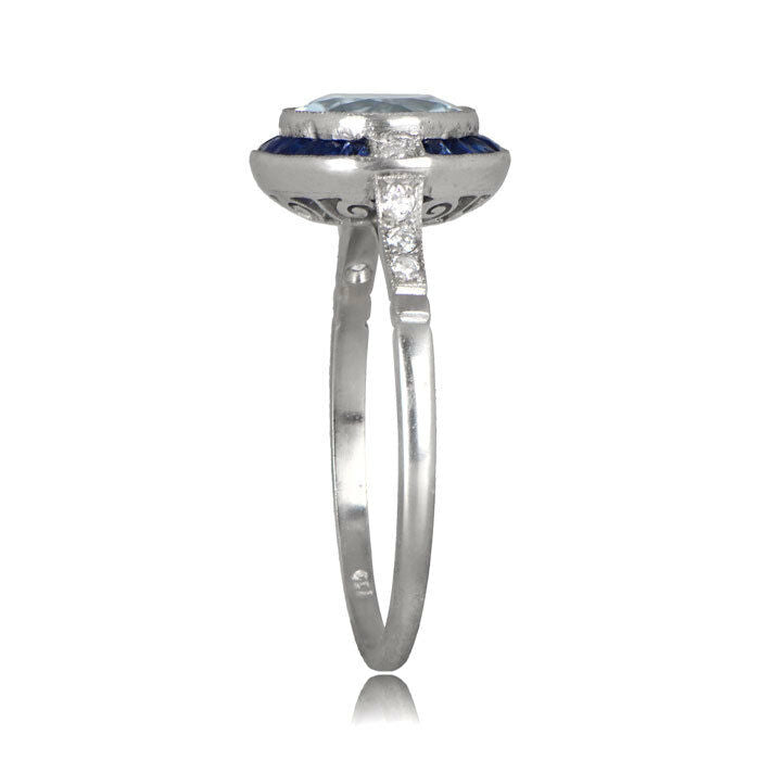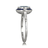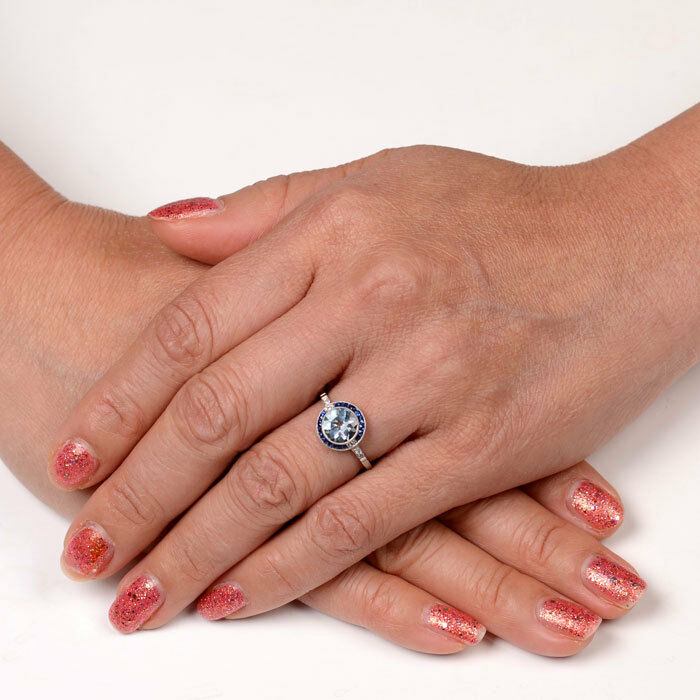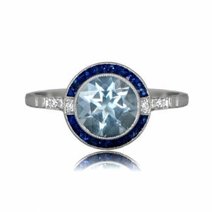 2ct Round Blue Aquamarine Sapphire Art Deco Engagement Ring 14k White Gold Over
