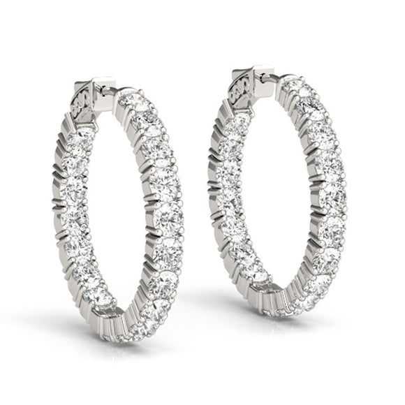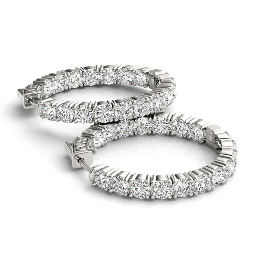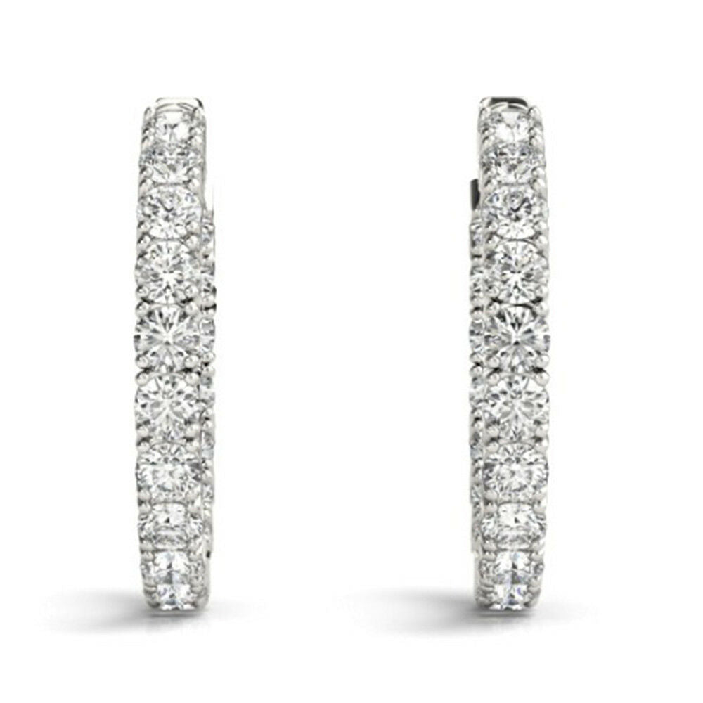 2ct Round Brilliant Cut Diamond Inside Out Hoop Earring 14k White Gold Finish