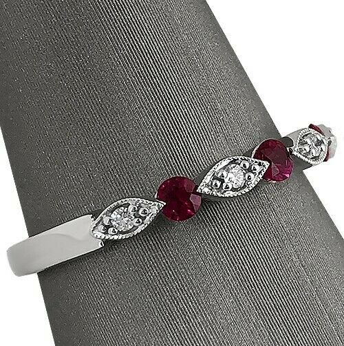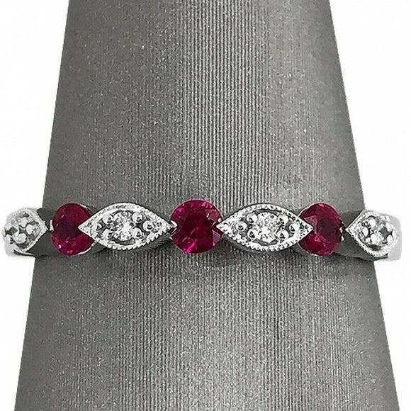 2Ct Round Cut Alternate Ruby Diamond Vintage Wedding Band 14K White Gold Finish