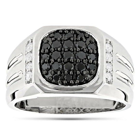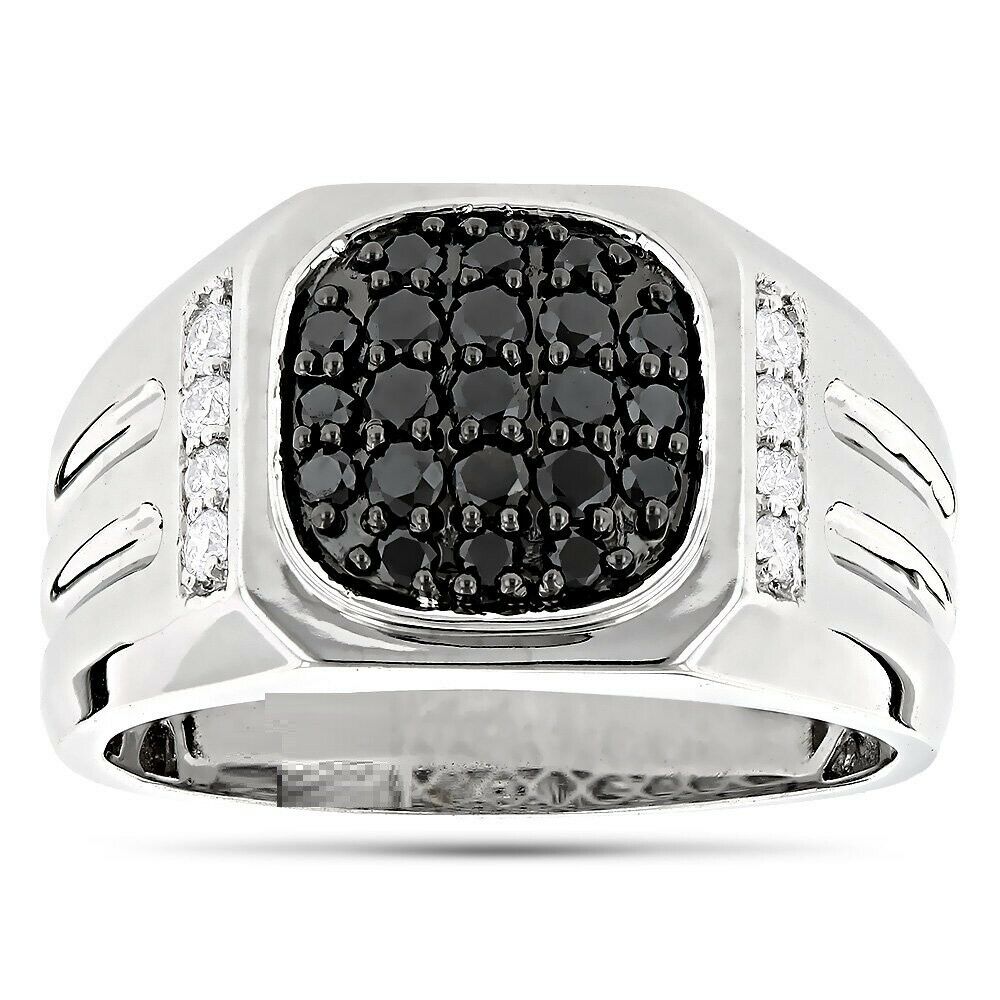 2Ct Round Cut Black Diamond Cluster Men Engagement Ring 14K White Gold Finish
