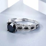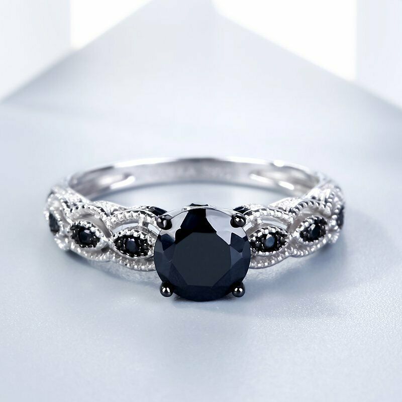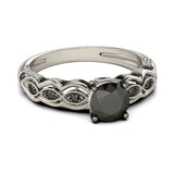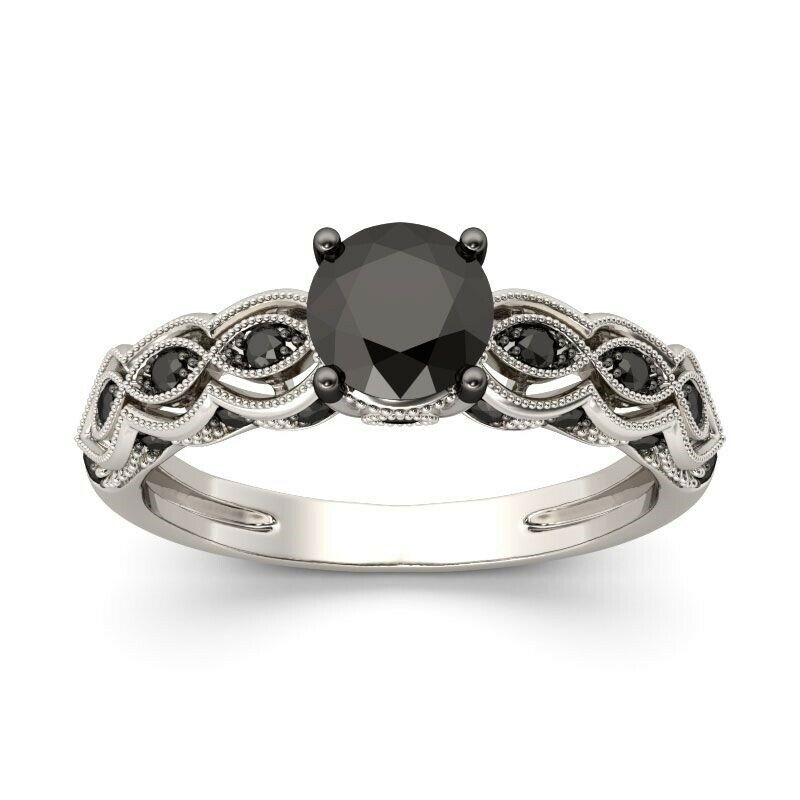 2Ct Round Cut Black Diamond Vintage Milgrain Solitaire Ring 14K White Gold Over