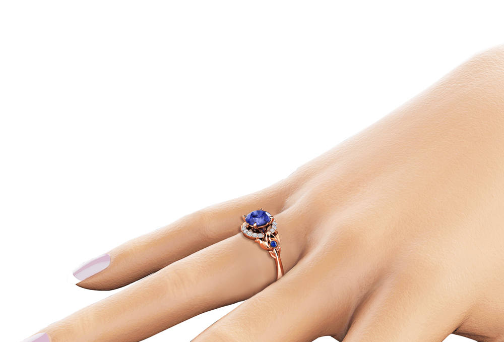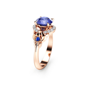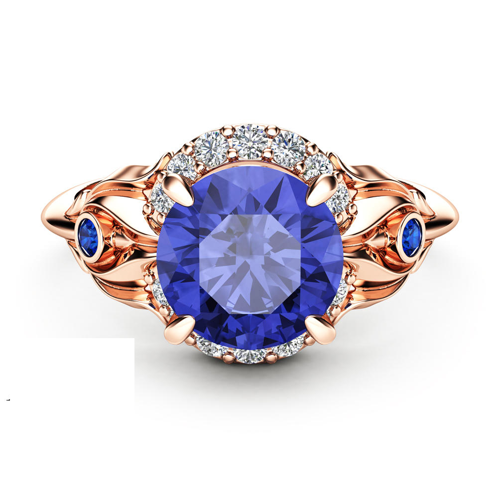 2ct Round Cut Blue Sapphire Engagement Ring 14k Rose Gold Finish Antique Vintage