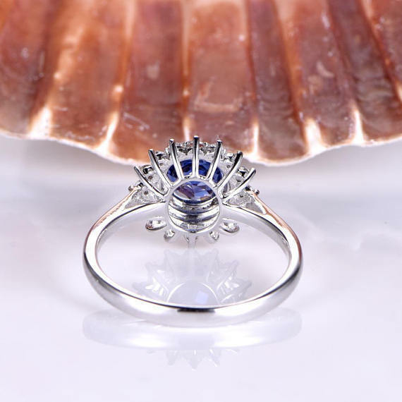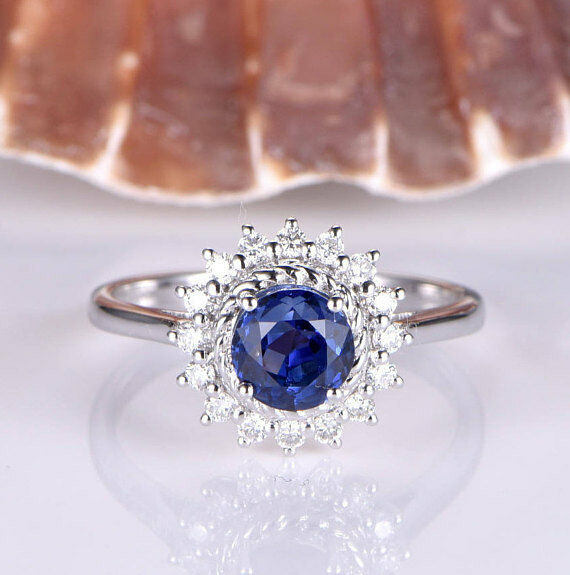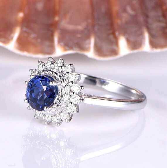 2ct Round Cut Blue Sapphire Engagement Ring 14k White Gold Finish Vintage Floral