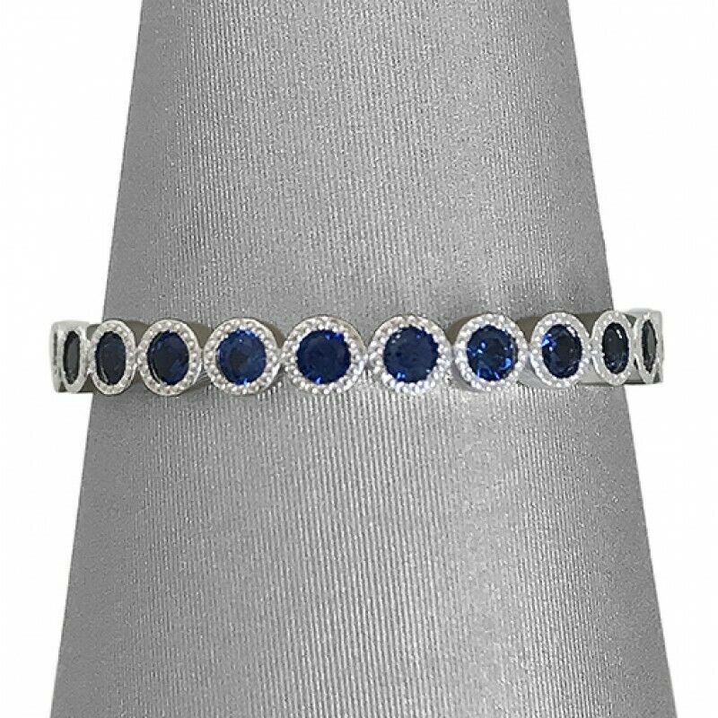 2Ct Round Cut Blue Sapphire Vintage Eternity Wedding Band 14K White Gold Finish