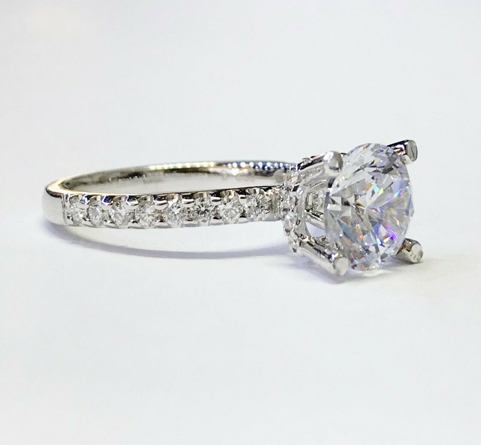 2Ct Round Cut Diamond Accent Hidden Halo Solitaire Ring 14K White Gold Finish