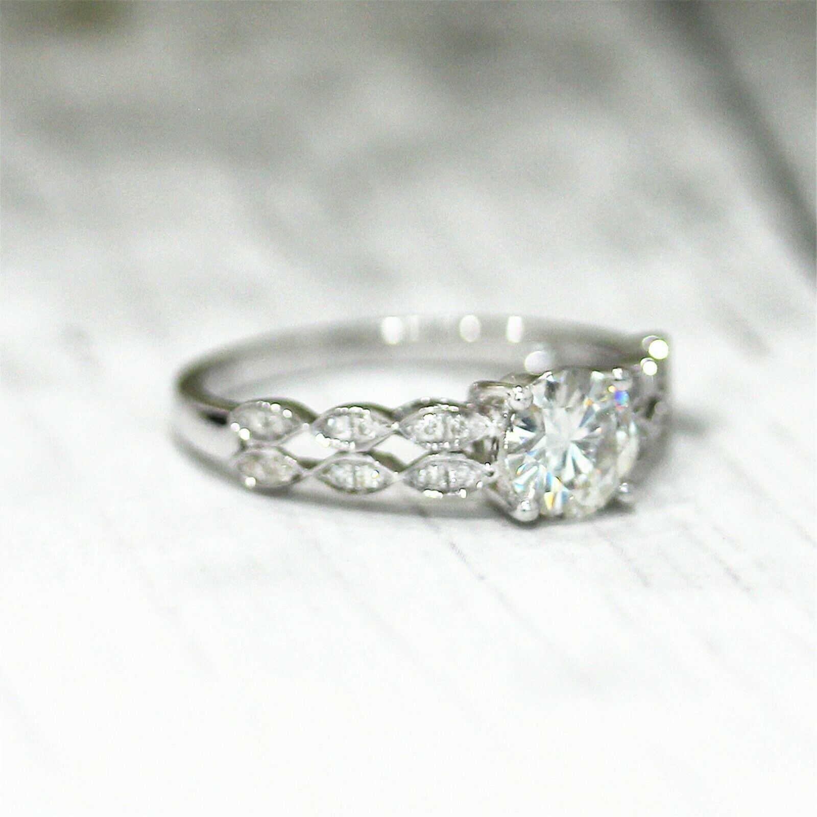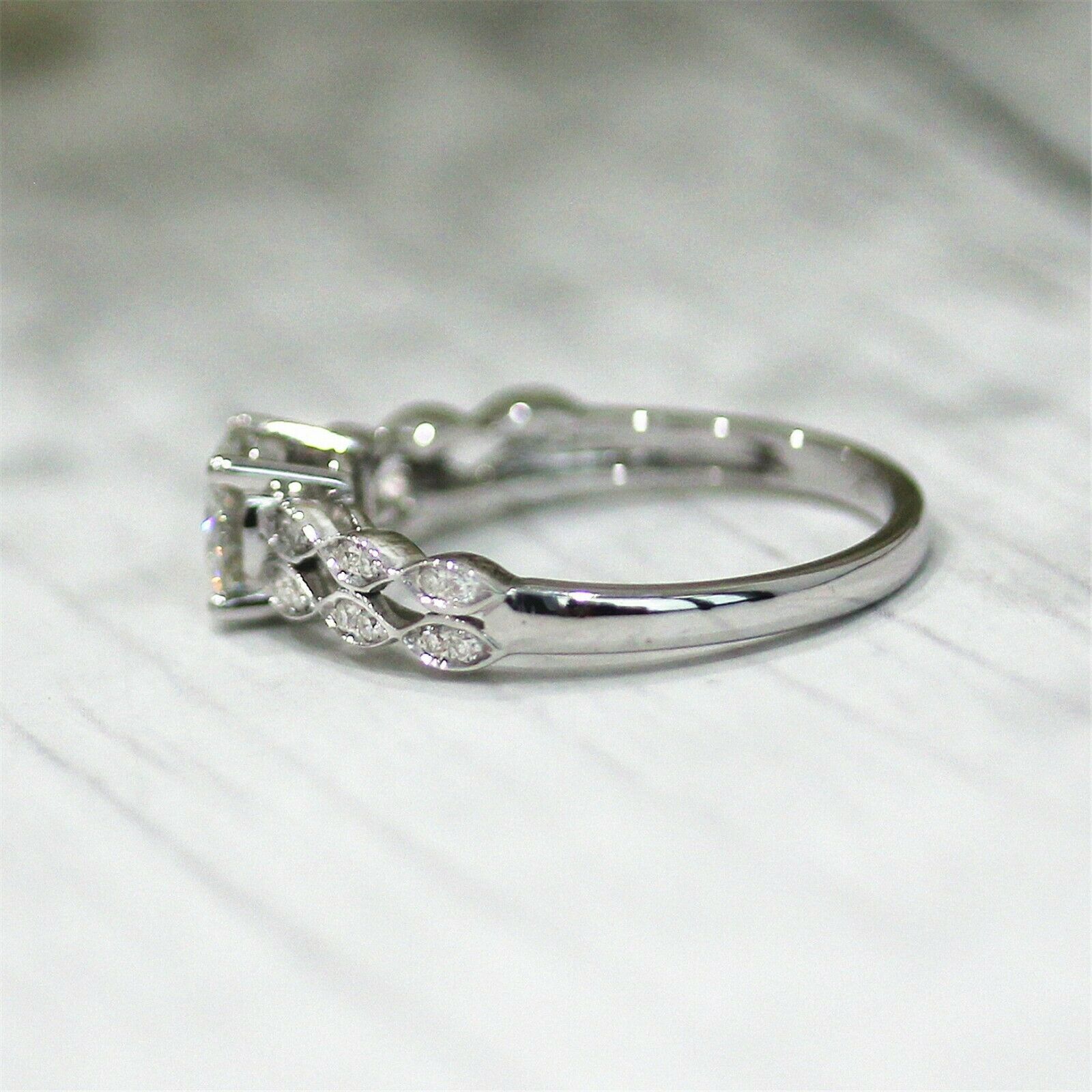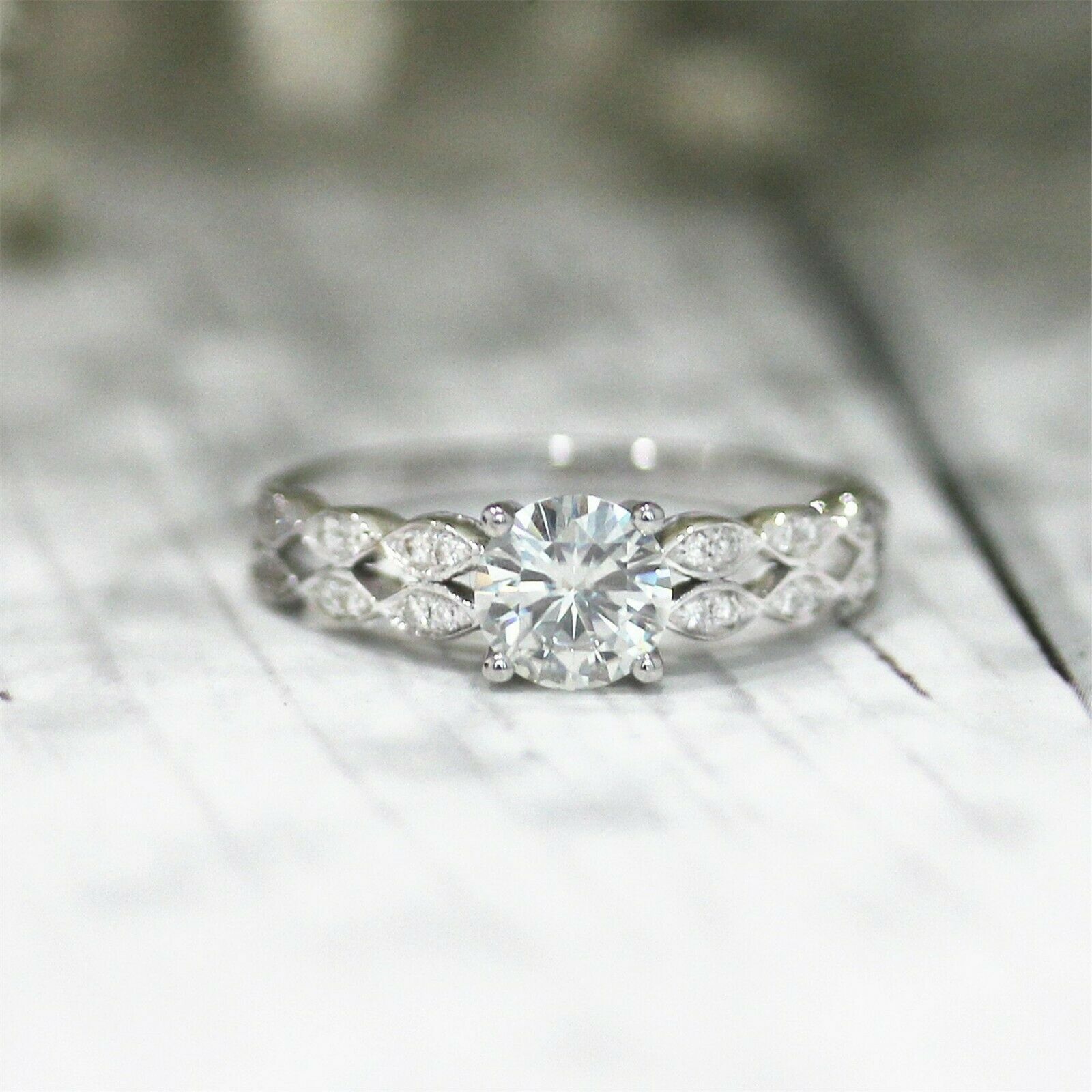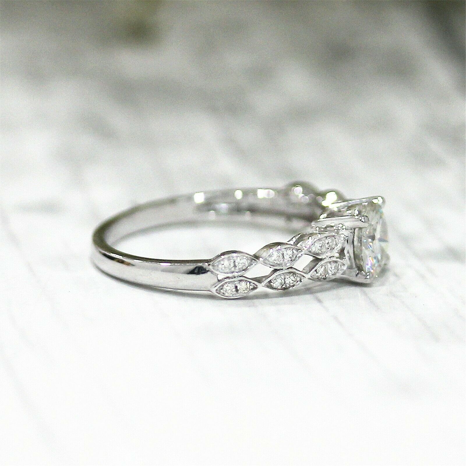 2Ct Round Cut Diamond Dual Row Shank Engagement Ring 14K White Gold Finish