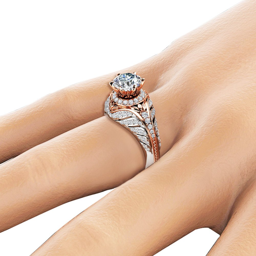 2ct Round Cut Diamond Engagement Ring 14k Dual Tone Finish Unique Antique Halo