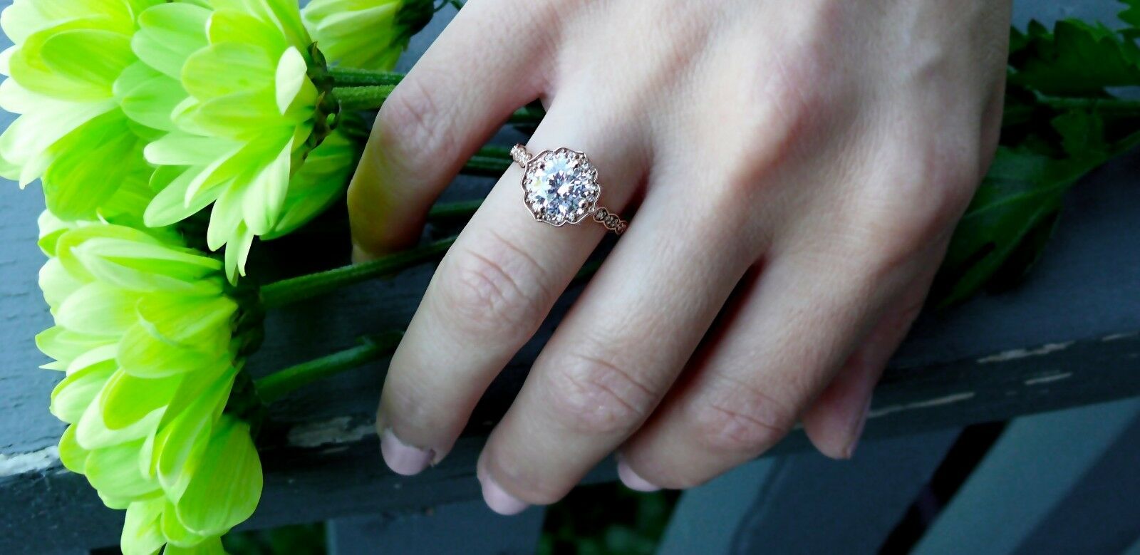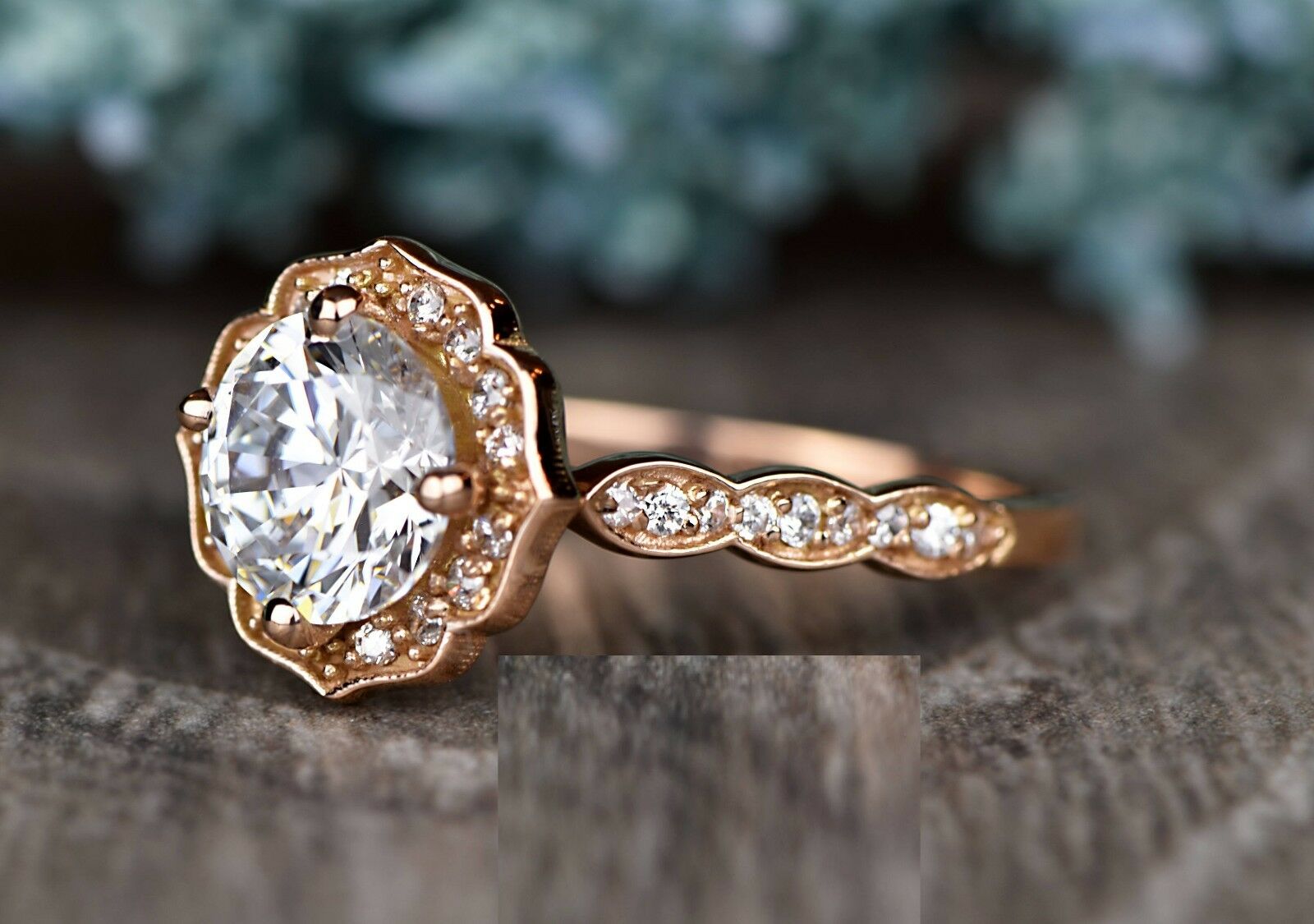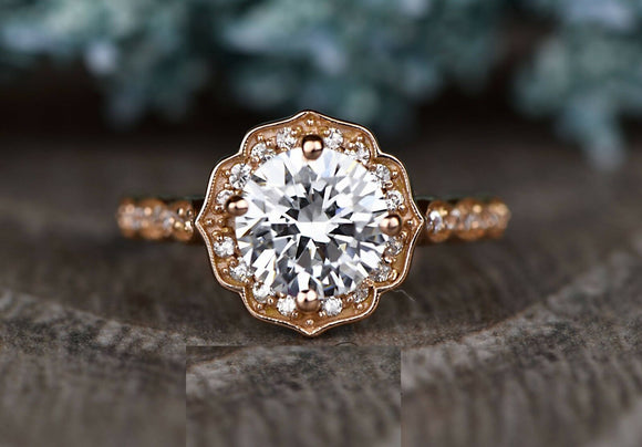 2ct Round Cut Diamond Engagement Ring 14k RoseGold Finish Vintage Floral Promise