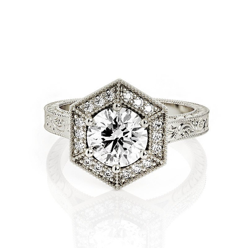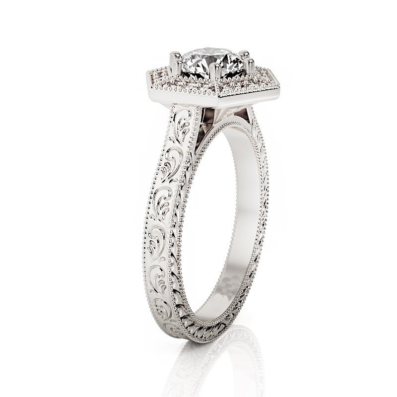 2ct Round Cut Diamond Engagement Ring 14k White Gold Finish Halo Antique Vintage