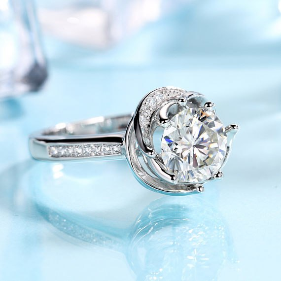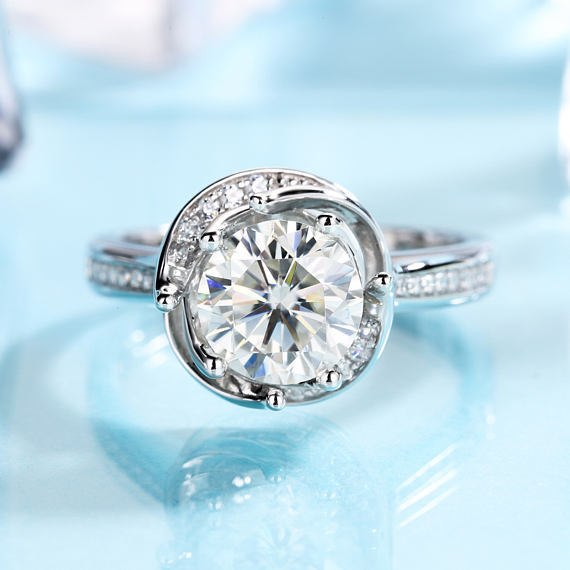 2ct Round Cut Diamond Engagement Ring 14k White Gold Finish Halo Promise Women