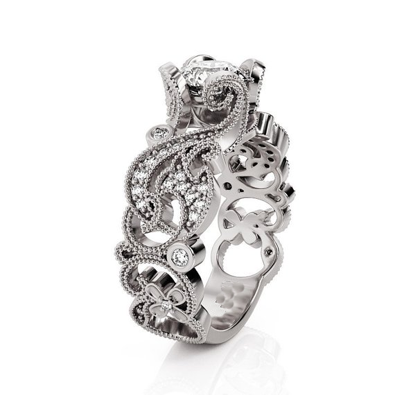 2ct Round Cut Diamond Engagement Ring 14k White Gold Finish Leaf Filigree Flower