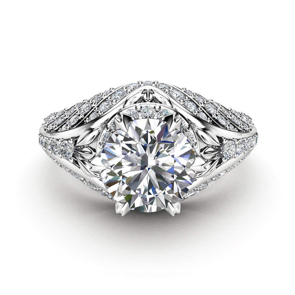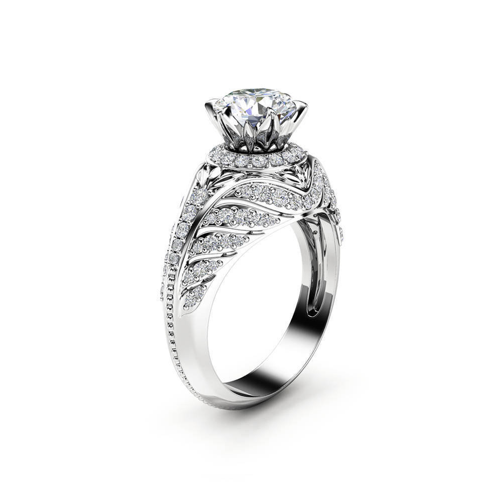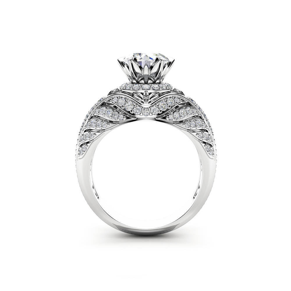 2ct Round Cut Diamond Engagement Ring 14k White Gold Finish Unique Halo Wedding