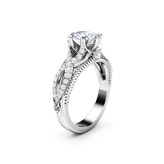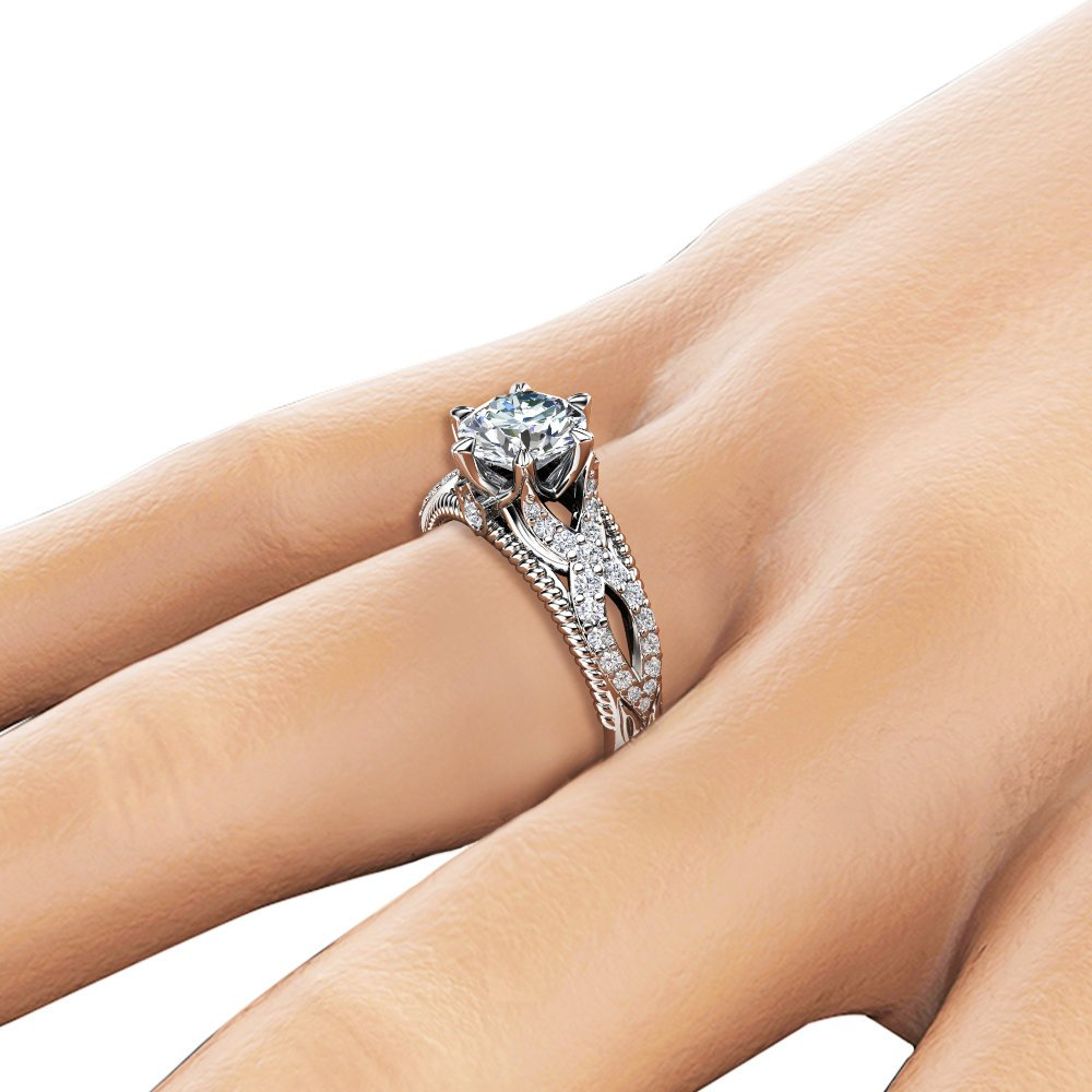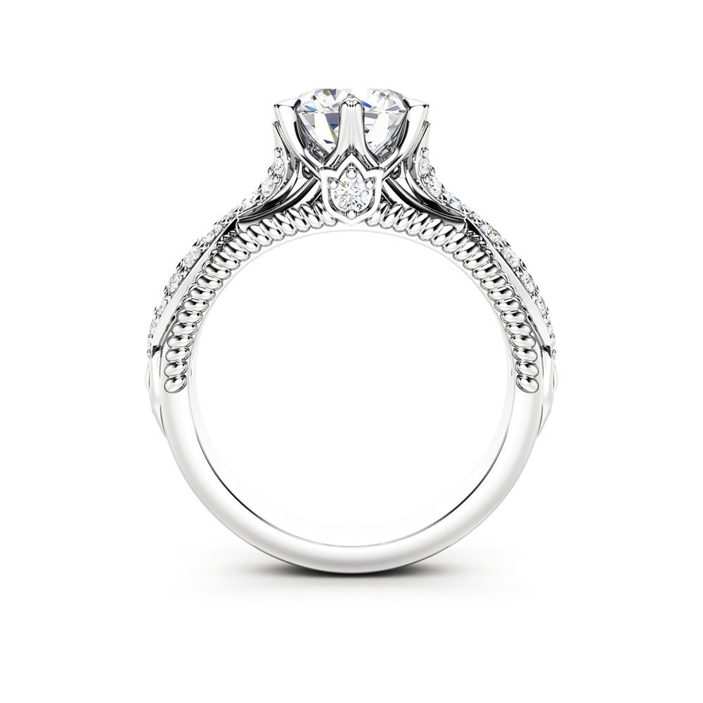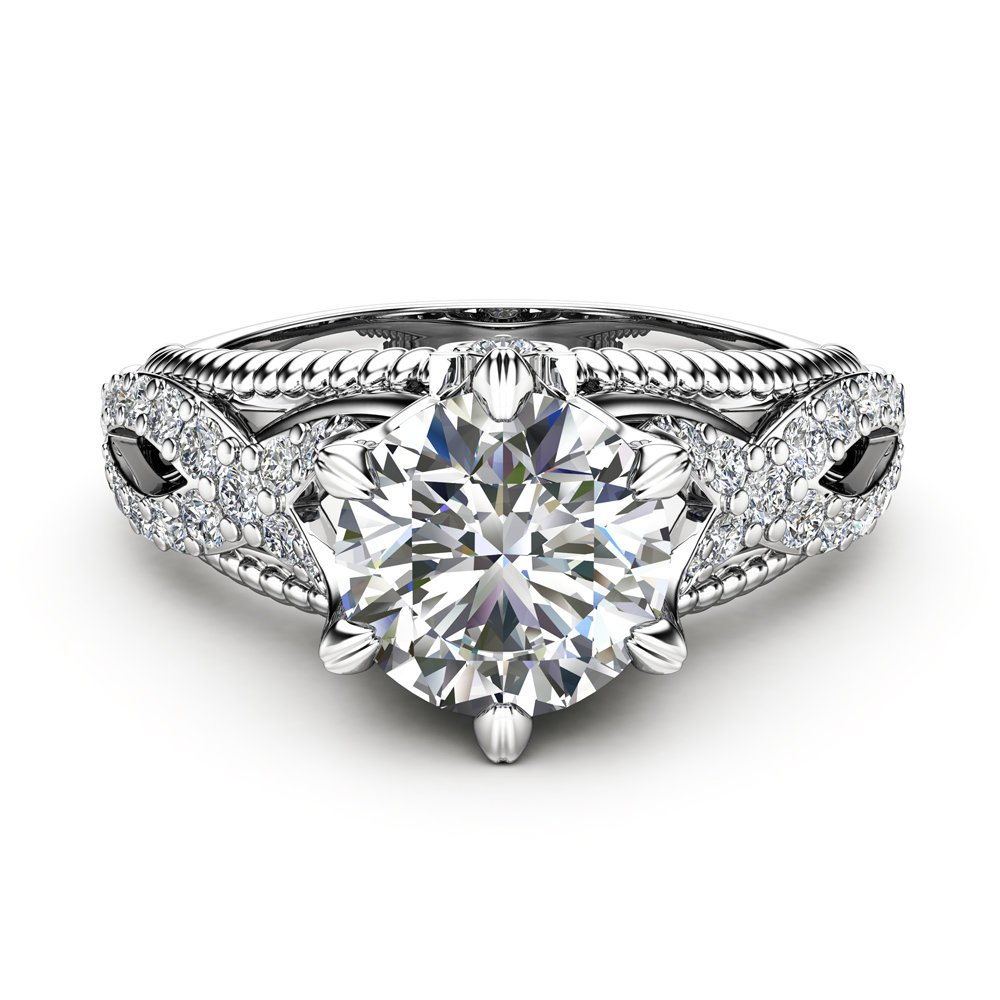 2ct Round Cut Diamond Engagement Ring 14k White Gold Over Milgrain Unique Design
