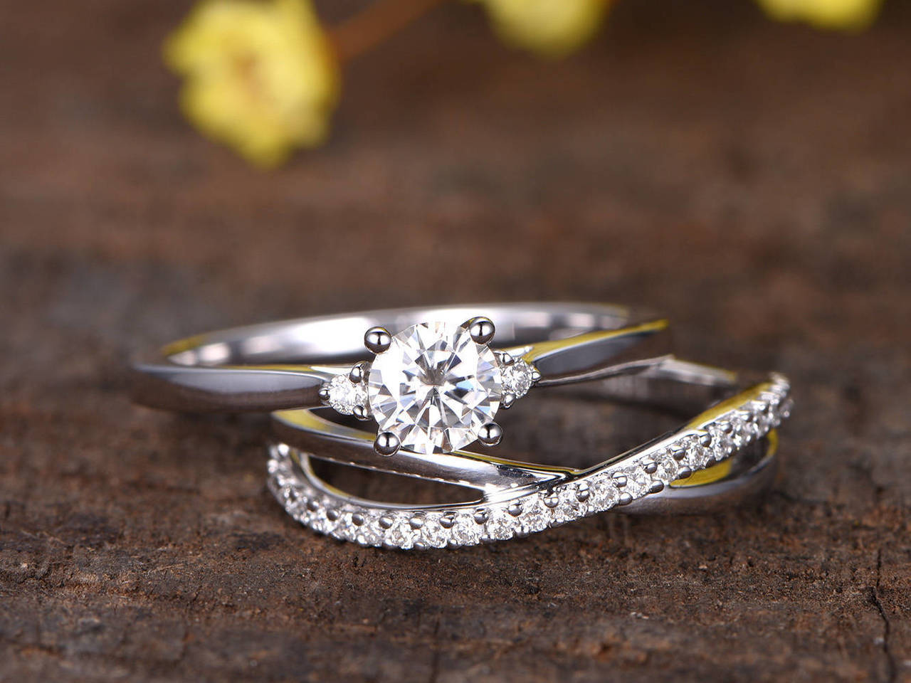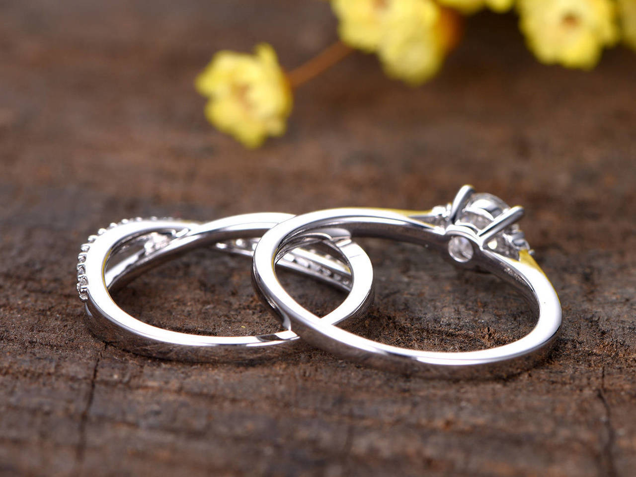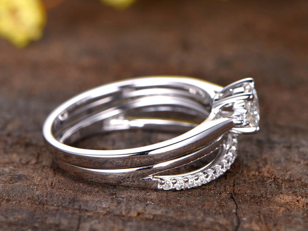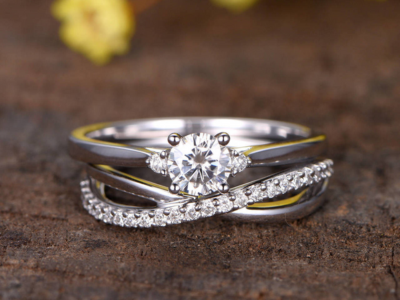 2ct Round Cut Diamond Engagement Ring 14k White Gold Over Split Shank Bridal Set