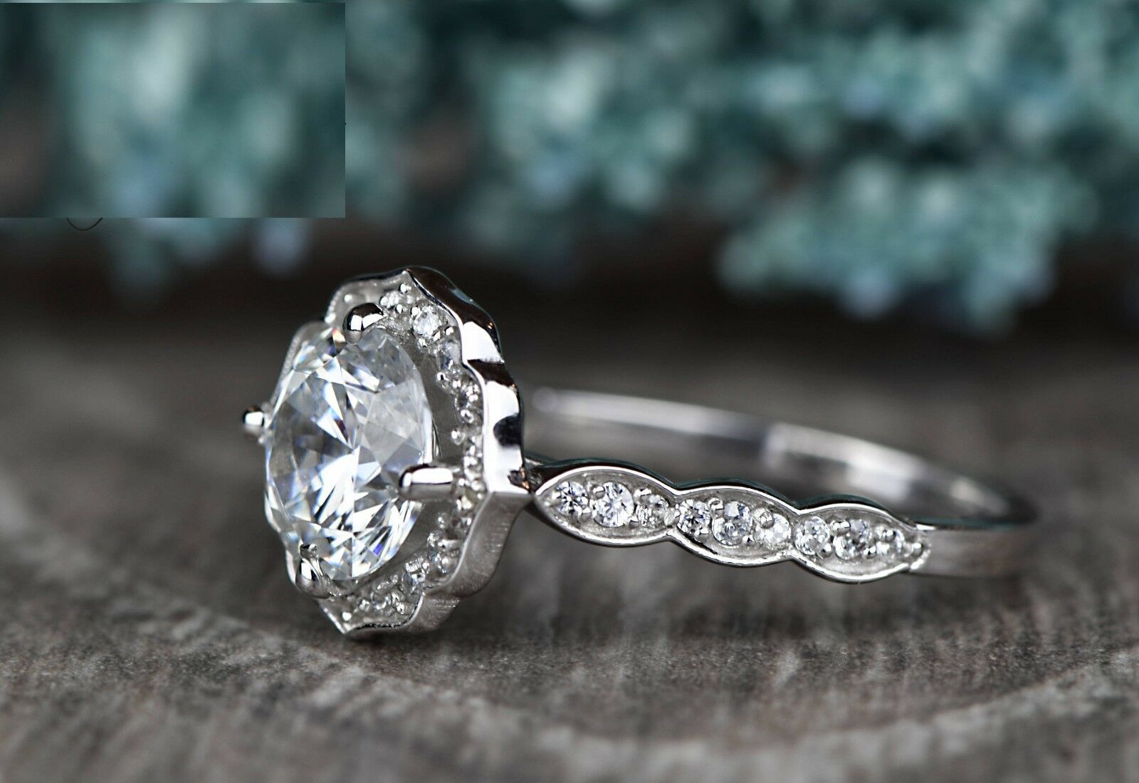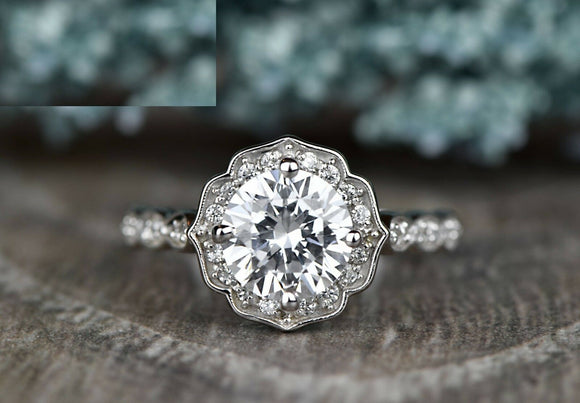 2ct Round Cut Diamond Engagement Ring 14k White Gold Over Vintage Floral Promise