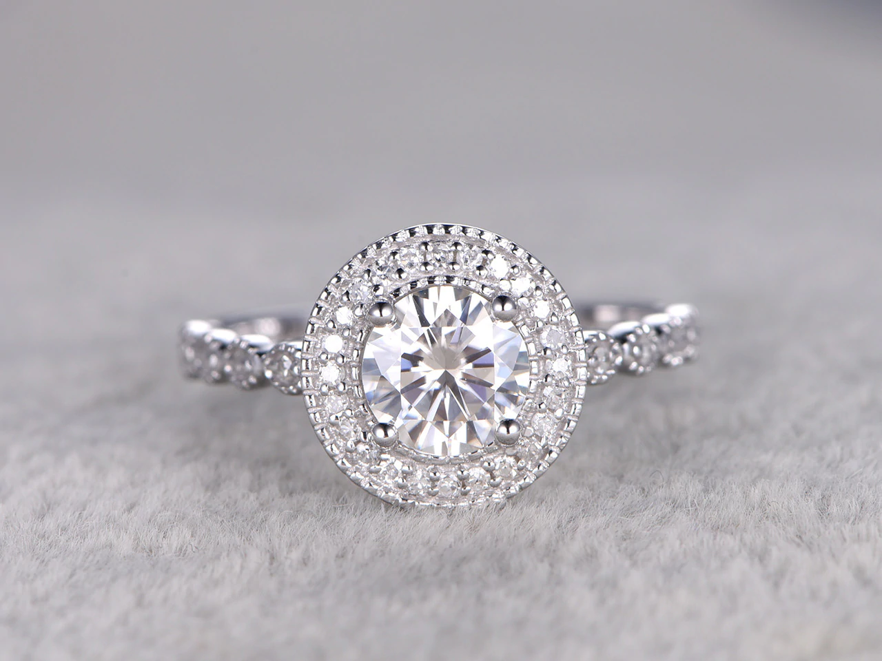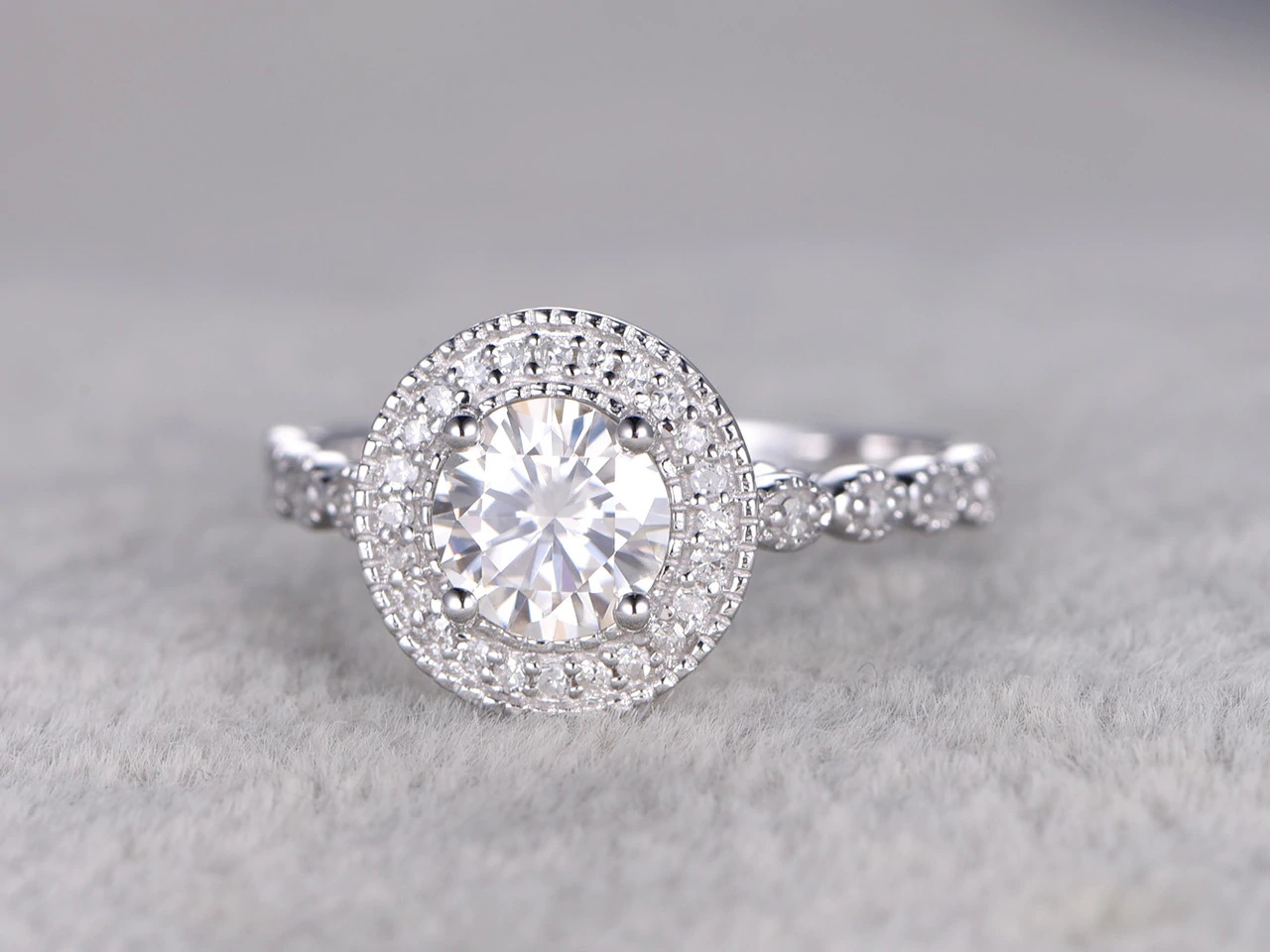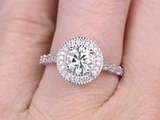 2ct Round Cut Diamond Engagement Ring 14k WhiteGold Finish Halo Art Deco Antique