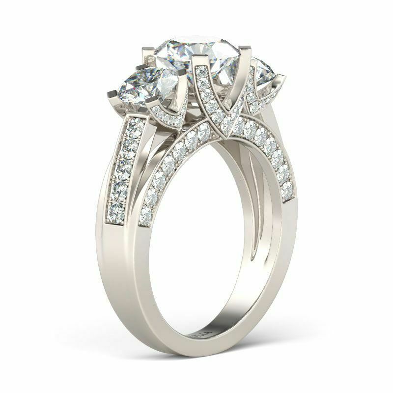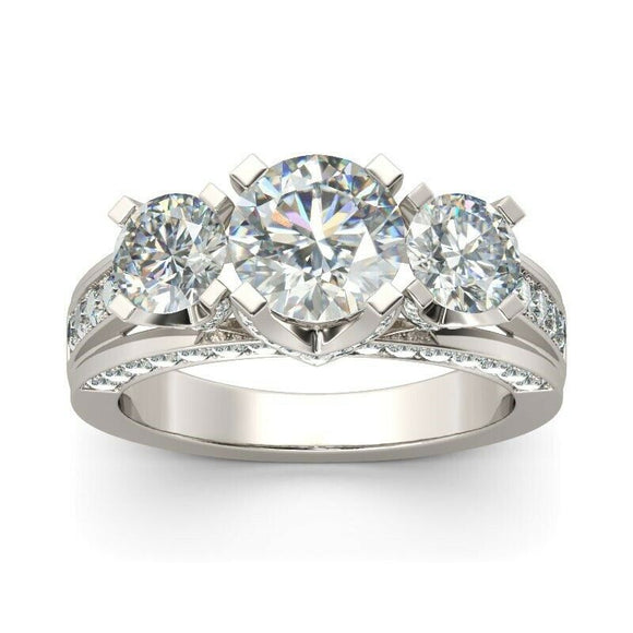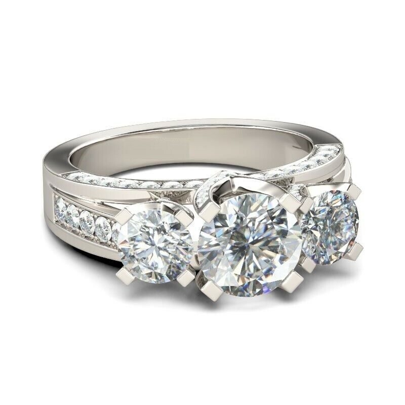 2ct Round Cut Diamond Engagement Ring 14k WhiteGold Finish Three Stone Solitaire