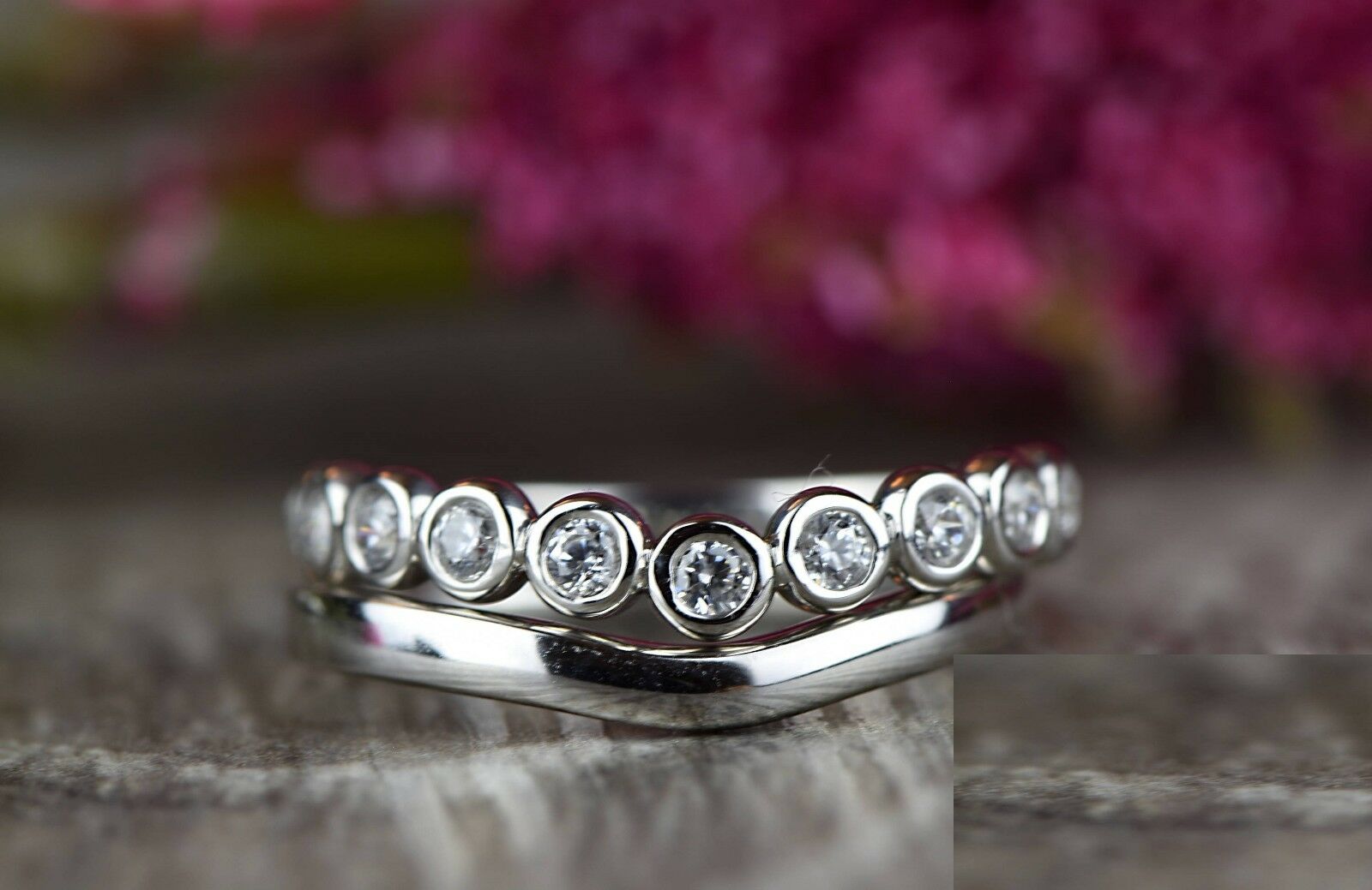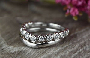 2ct Round Cut Diamond Engagement Ring 14k WhiteGold Finish Wavy Wedding Band Set