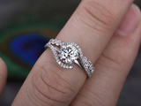 2ct Round Cut Diamond Engagement Ring 14k WhiteGold Over Swirl Design Bridal Set