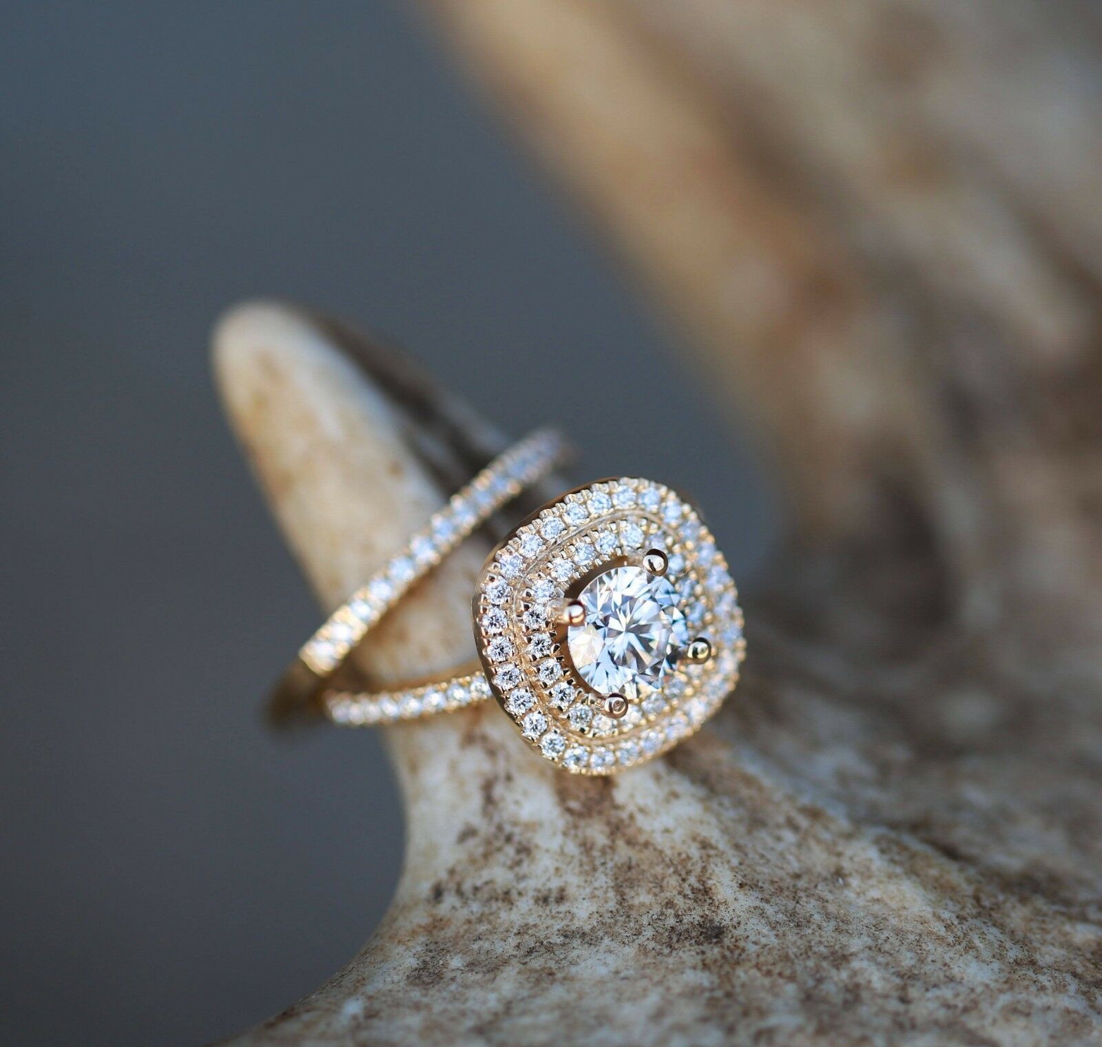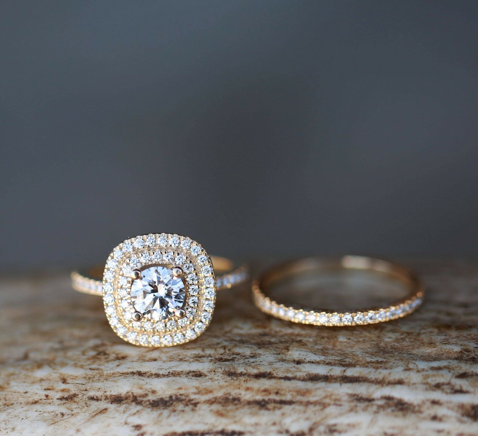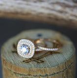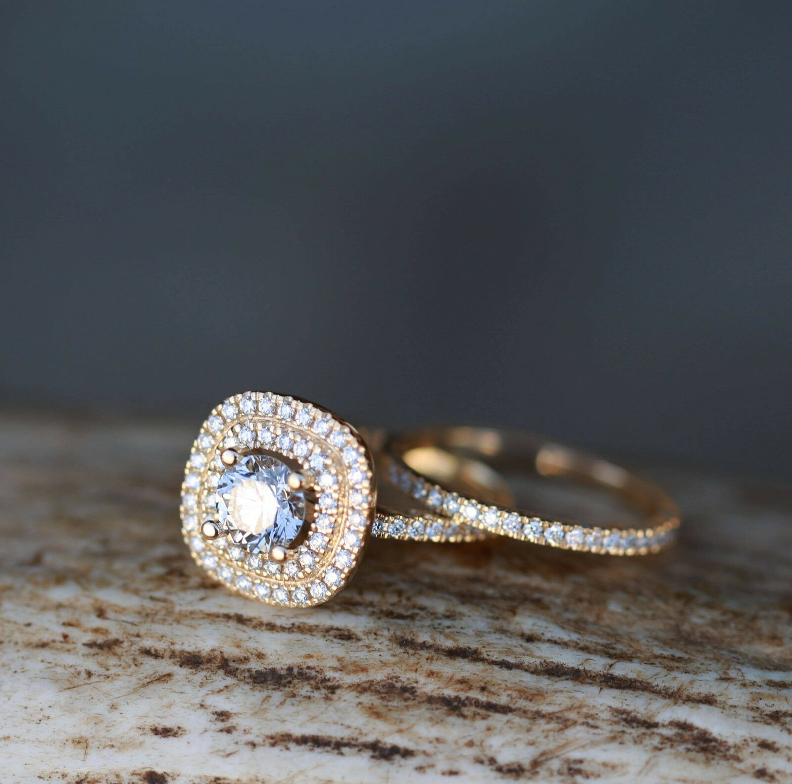 2ct Round Cut Diamond Engagement Ring 14k YellowGold Over Double Halo Bridal Set