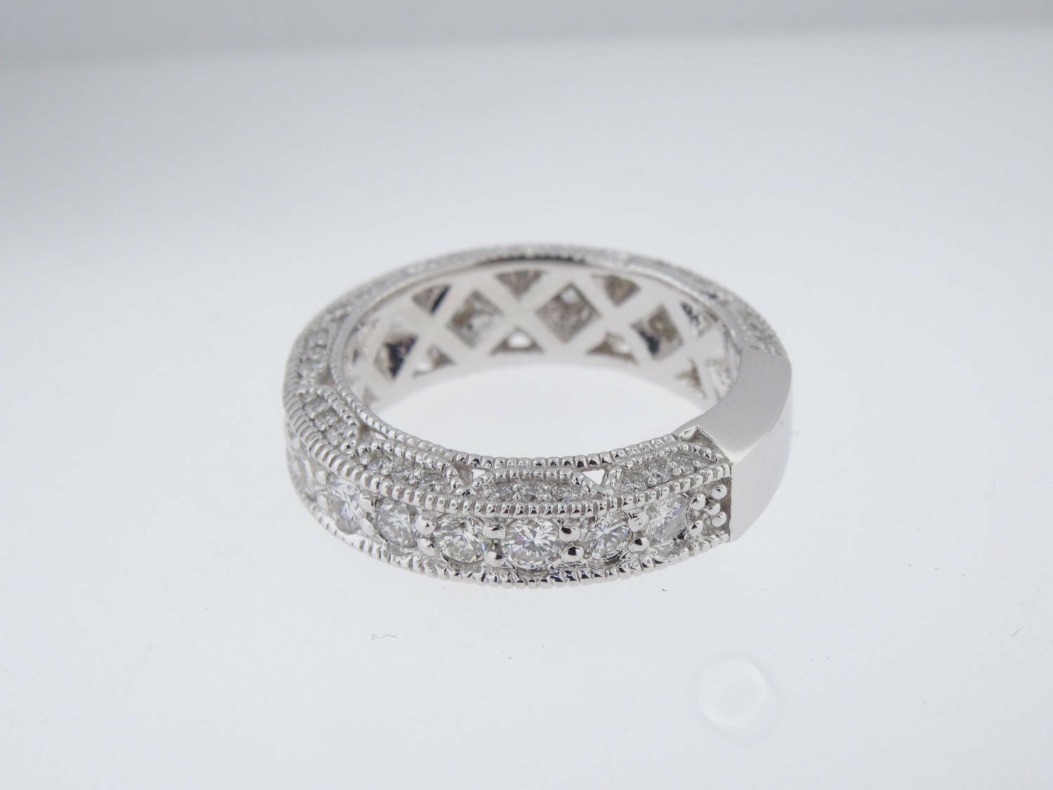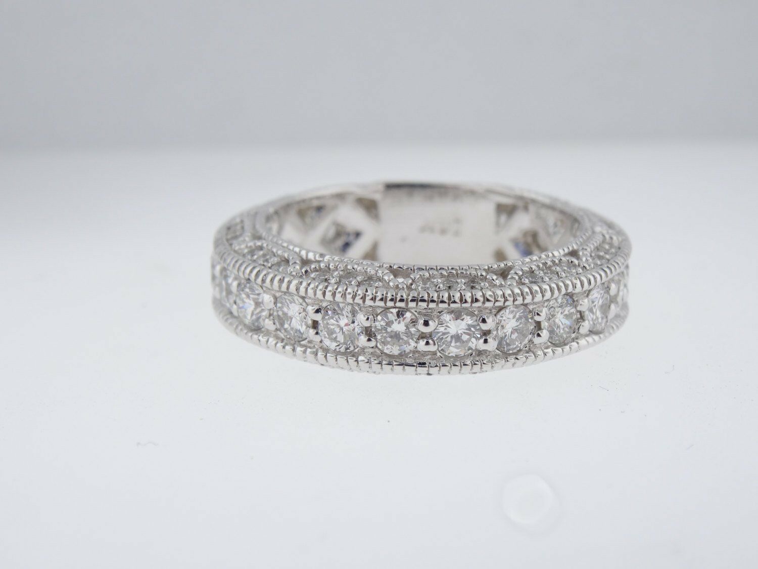 2ct Round Cut Diamond Half Eternity Milgrain Wedding Ring 14k White Gold Finish
