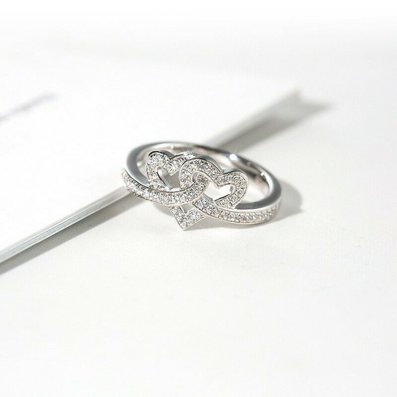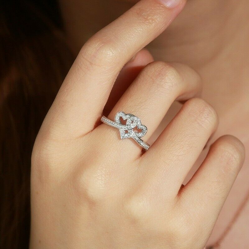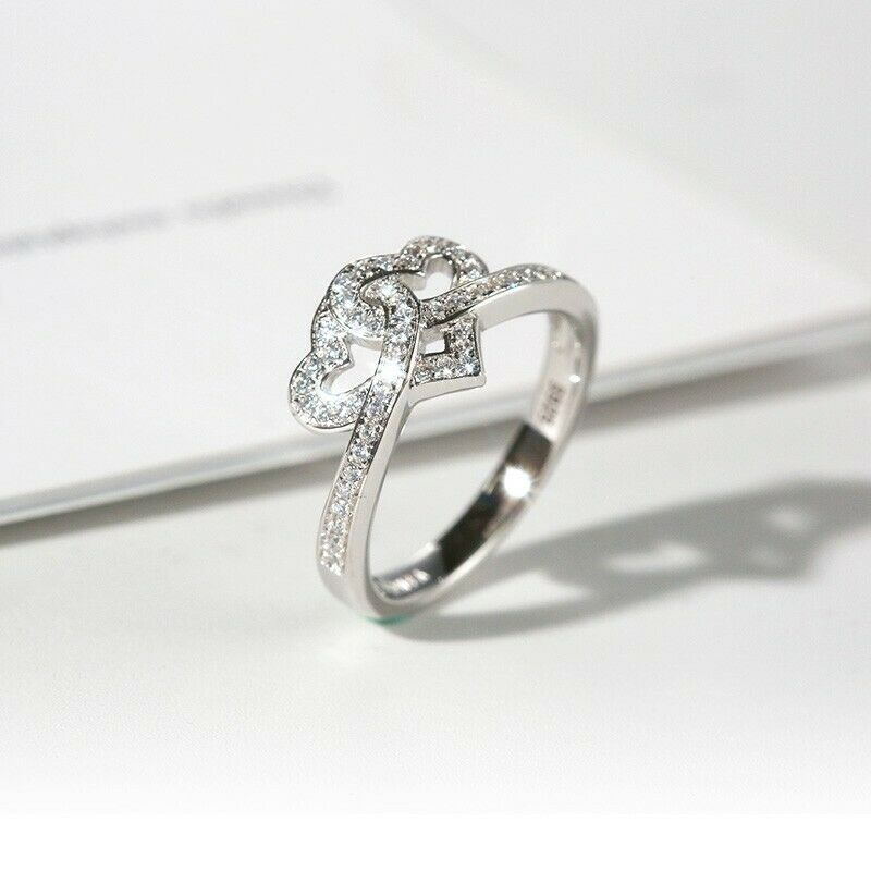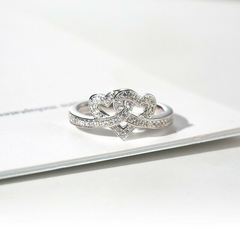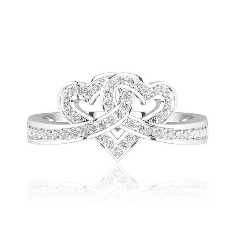 2Ct Round Cut Diamond Intertwined Hearts Engagement Ring 14K White Gold Finish